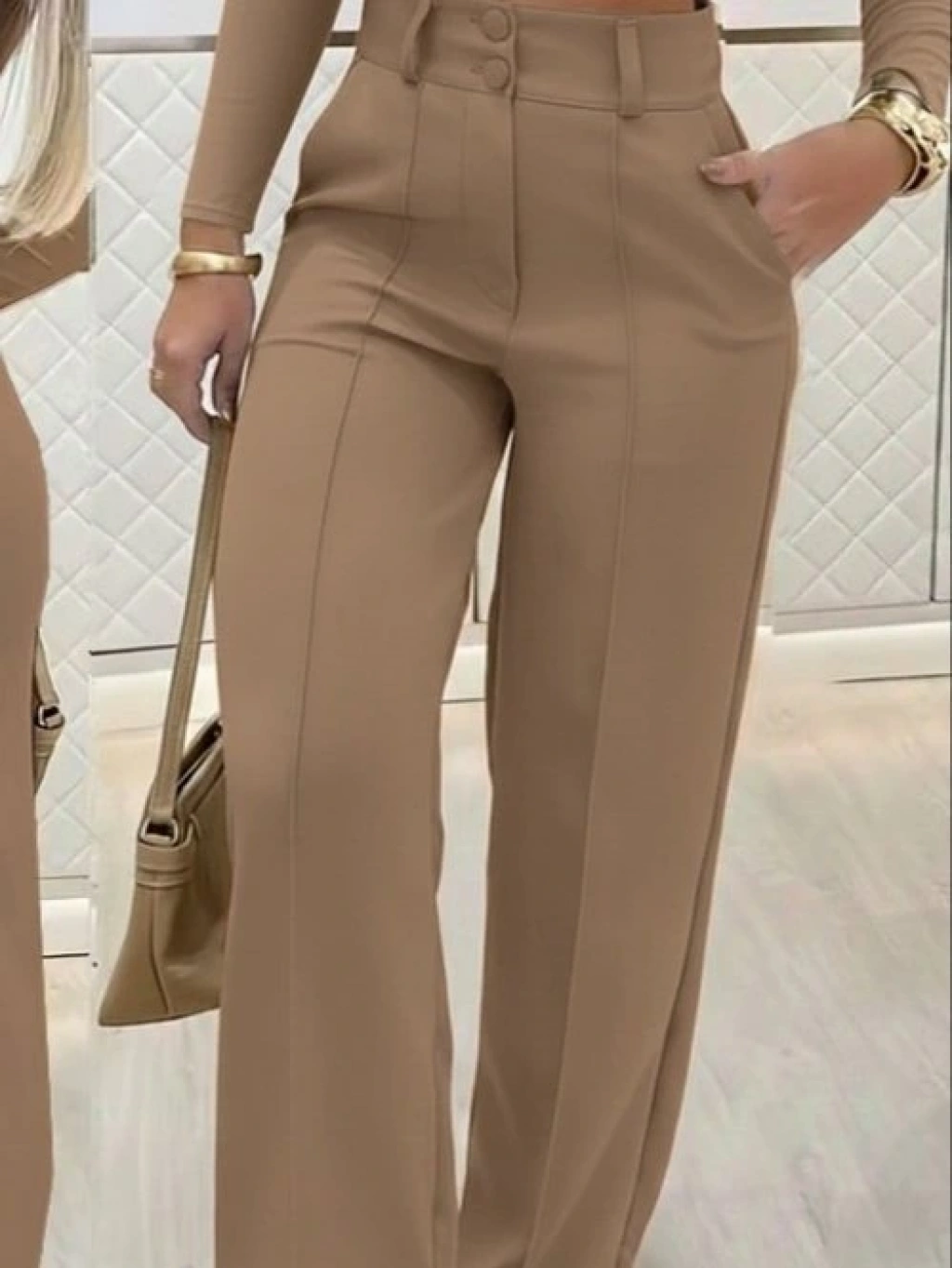 Kadın Uzun Kollu Göğüs Dekolteli Ithal Krep Bluz Ve Pantolon Ikili Takım