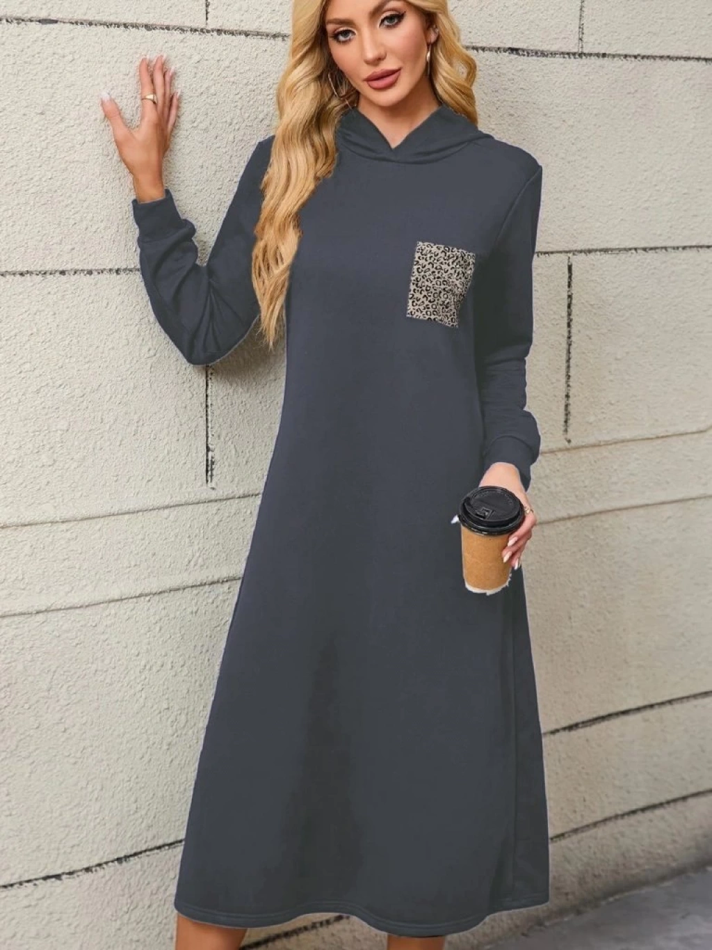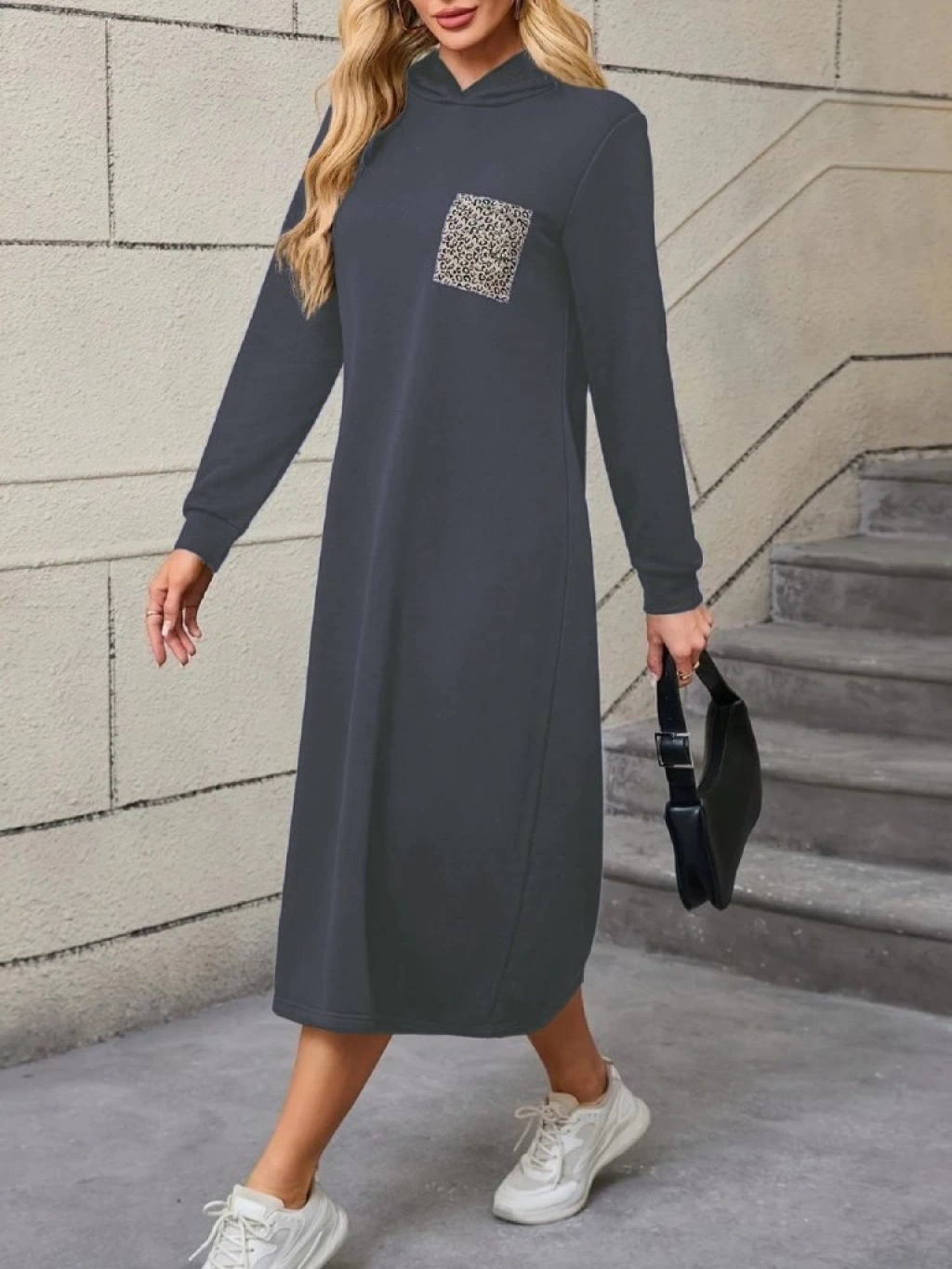 Kadın Uzun Kollu Kapşonlu Cep Detaylı Viskon Iki Iplik Maxi Elbise