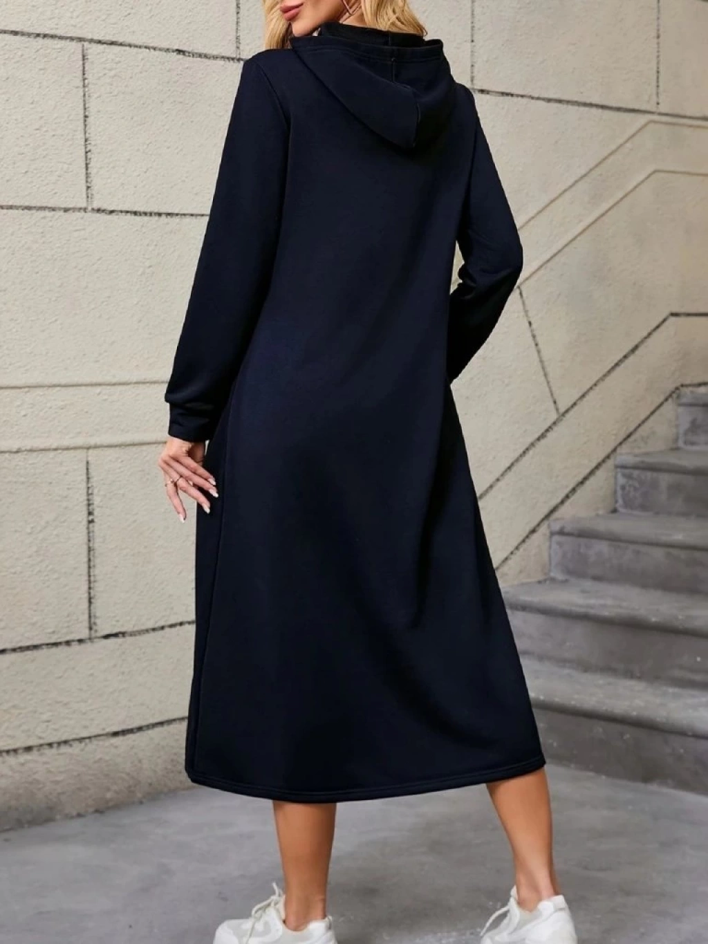 Kadın Uzun Kollu Kapşonlu Cep Detaylı Viskon Iki Iplik Maxi Elbise