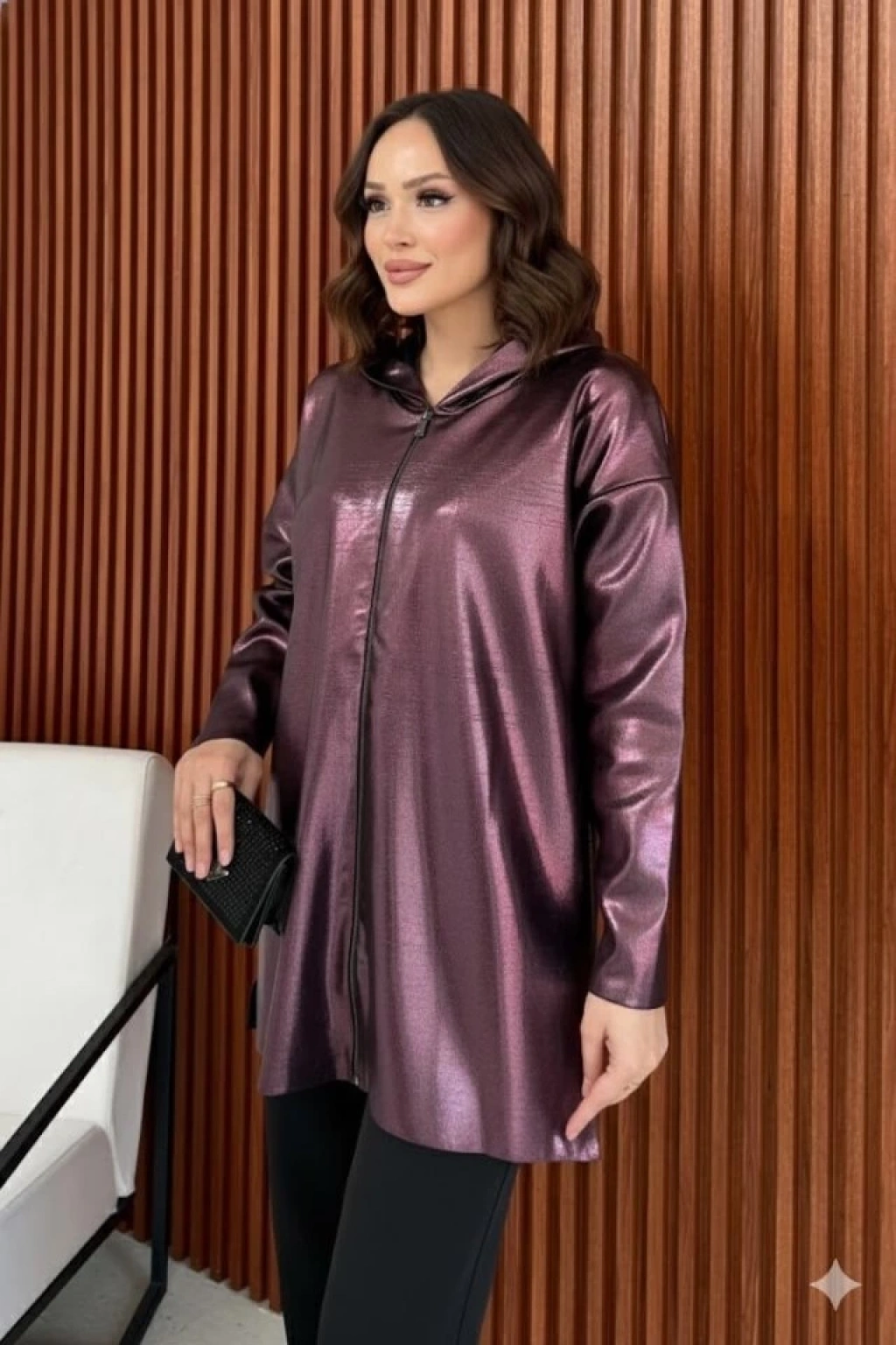 Kadın Uzun Kollu Kapüşon Detay Fermuarlı Tunik Hırka
