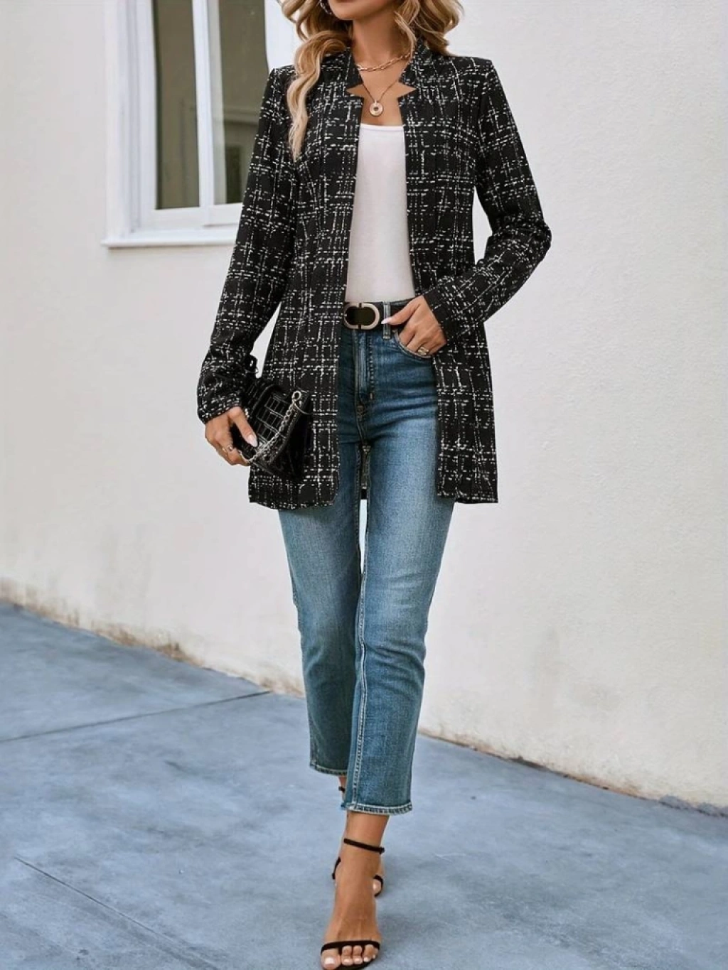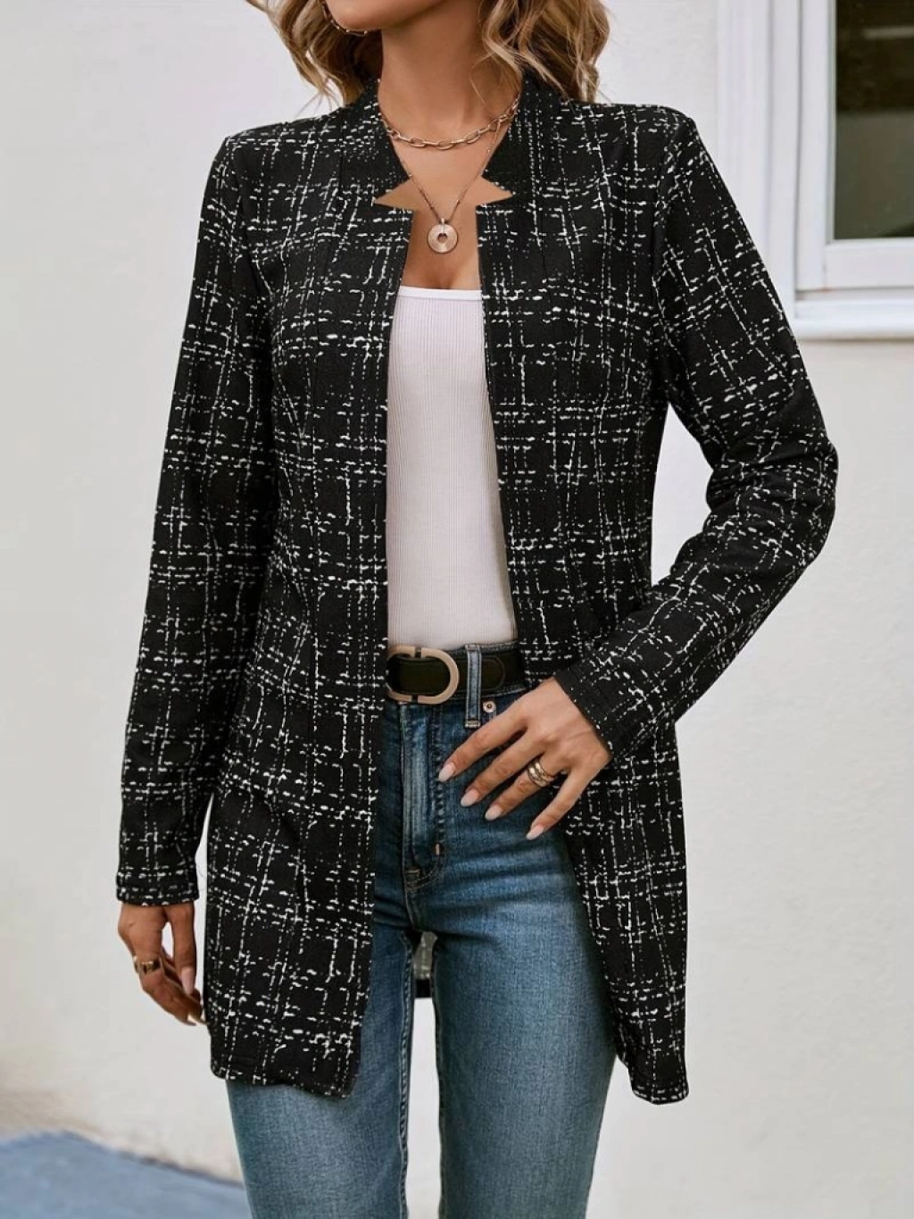 Kadın Uzun Kollu Kırlangıç Yaka önü Açık şanel Ceket