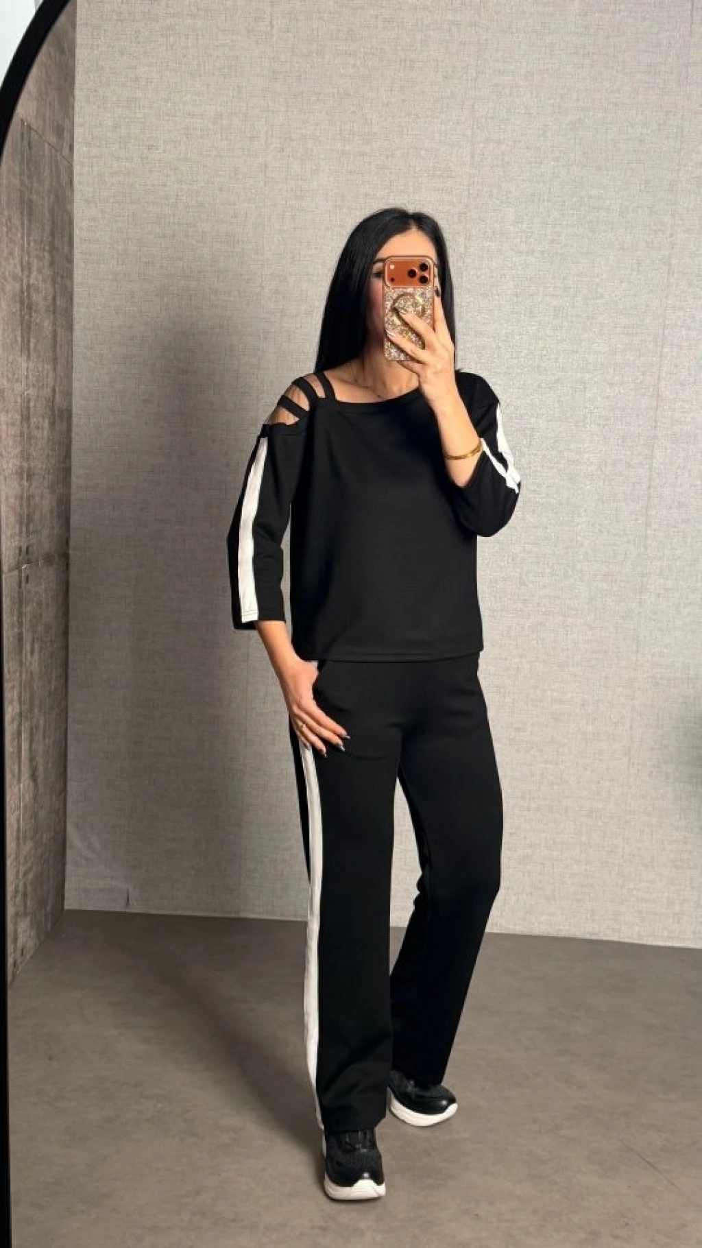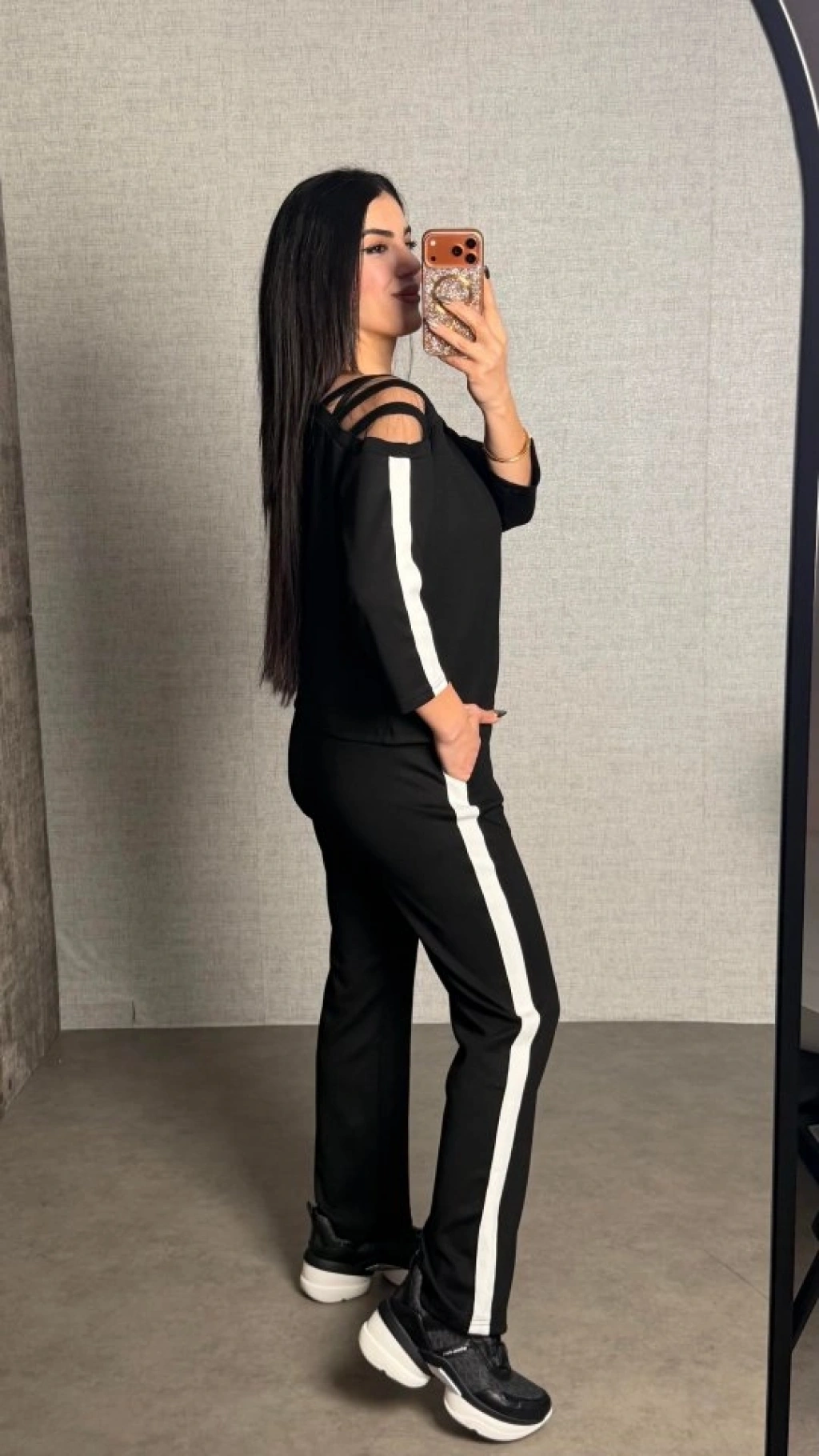 Kadın Uzun Kollu Kolu Tül Yanları şerit Detay Modal Ikili Takım