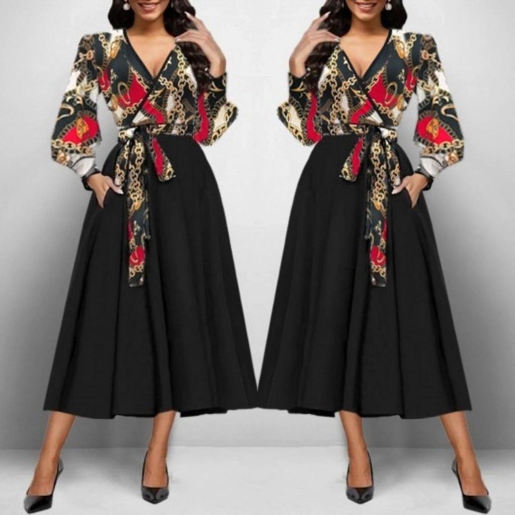 Kadın Uzun Kollu Kruvaze Yaka Dalgıç Krep Midi Boy Elbise