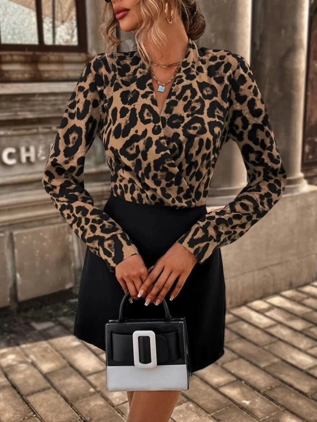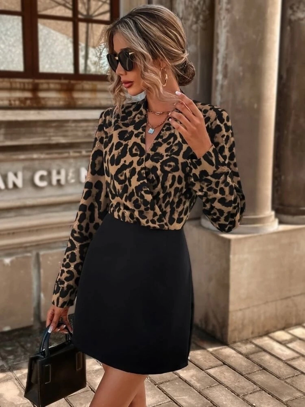 Kadın Uzun Kollu Kruvaze Yaka Krep Mini Boy Elbise