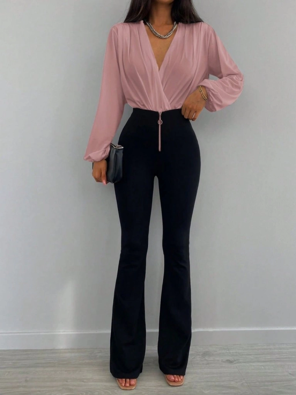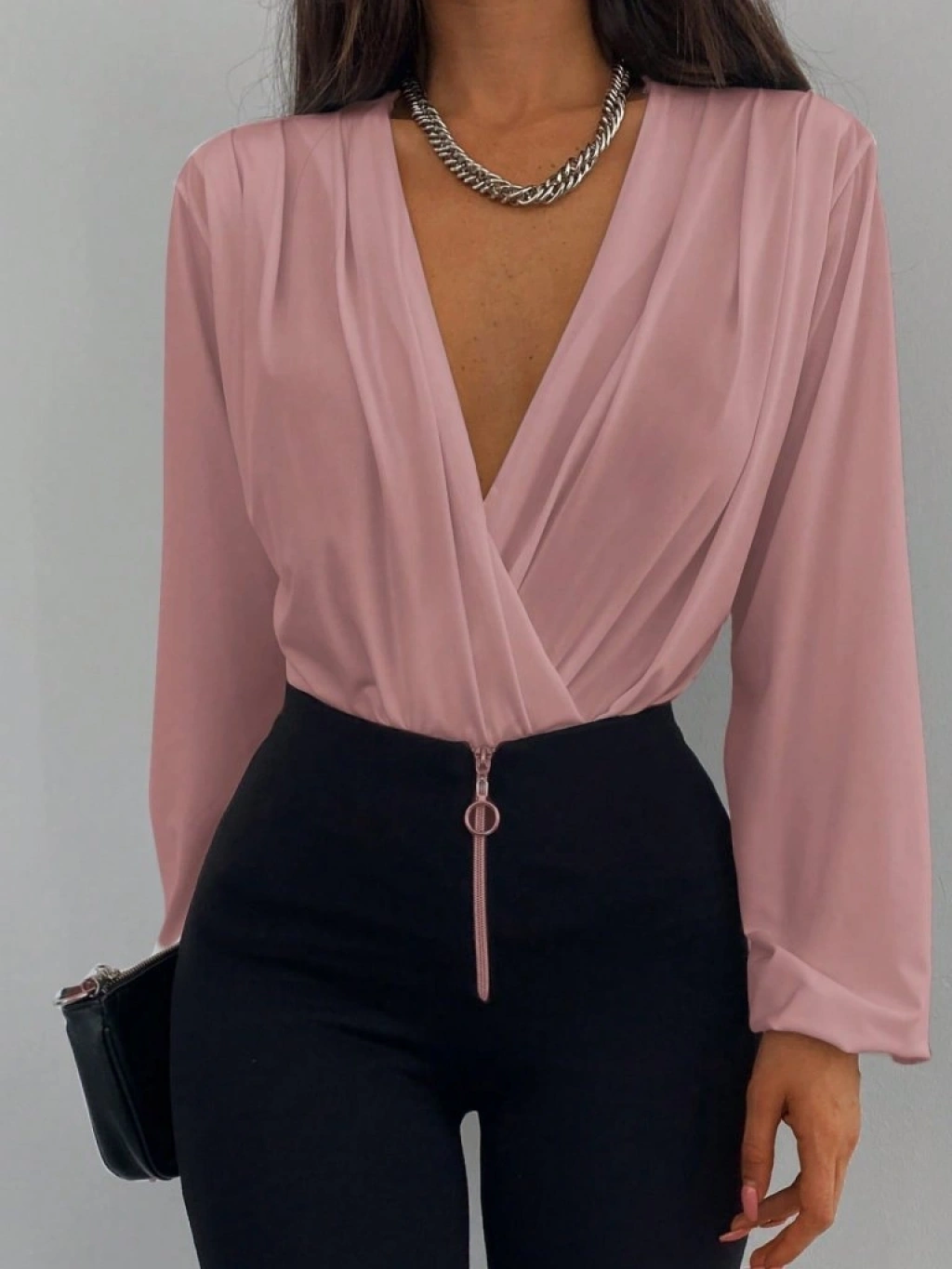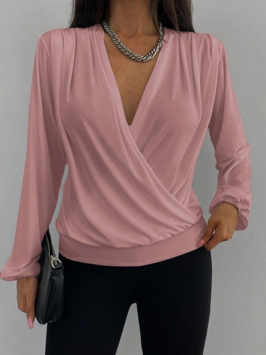 Kadın Uzun Kollu Kruvaze Yaka Sandy Bluz