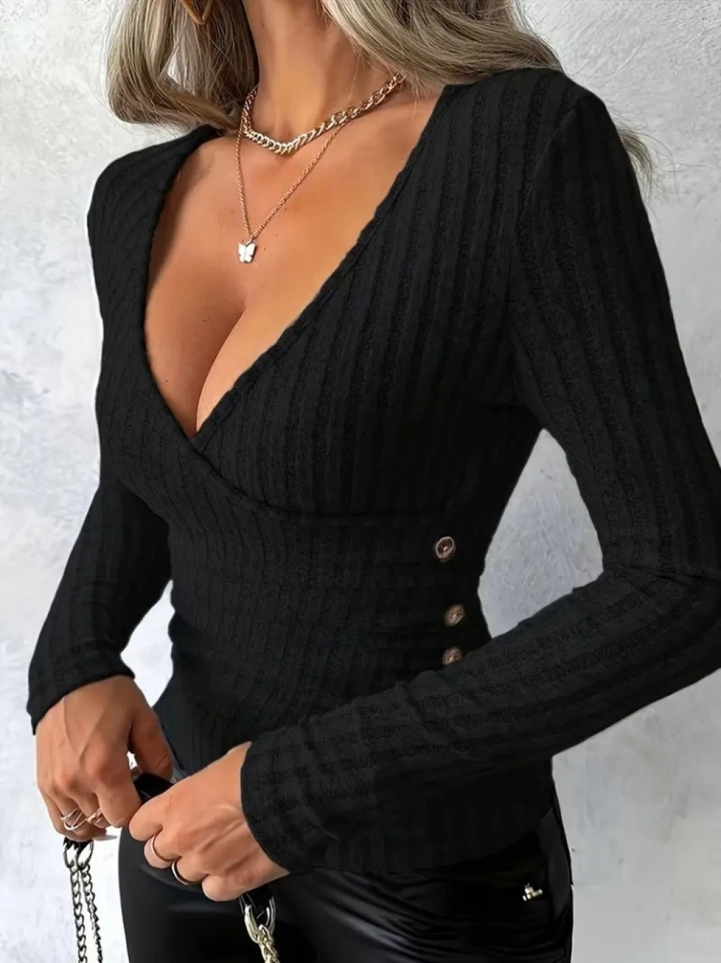 Kadın Uzun Kollu Kruvaze Yaka Yandan Düğme Detaylı şardonlu Kaşkorse Bluz
