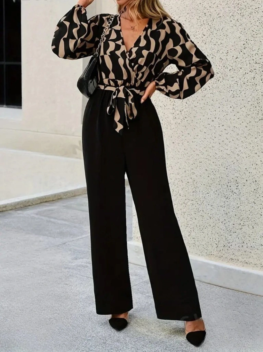 Kadın Uzun Kollu Kruvaze Yakalı Belden Kuşaklı üst Dalgıç Alt Ithal Krep Tulum
