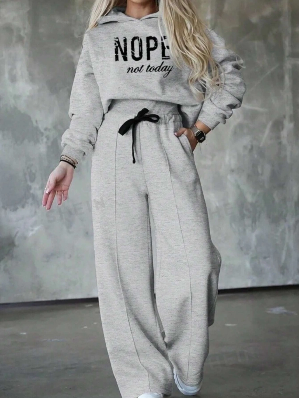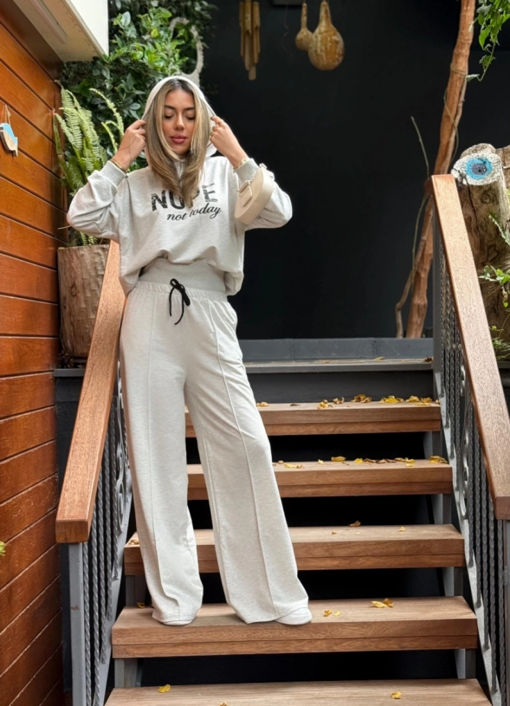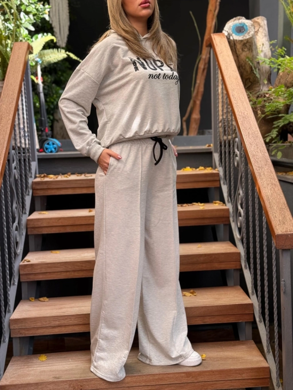 Kadın Uzun Kollu Nope Baskılı Beli Ribanalı Ikili Takım