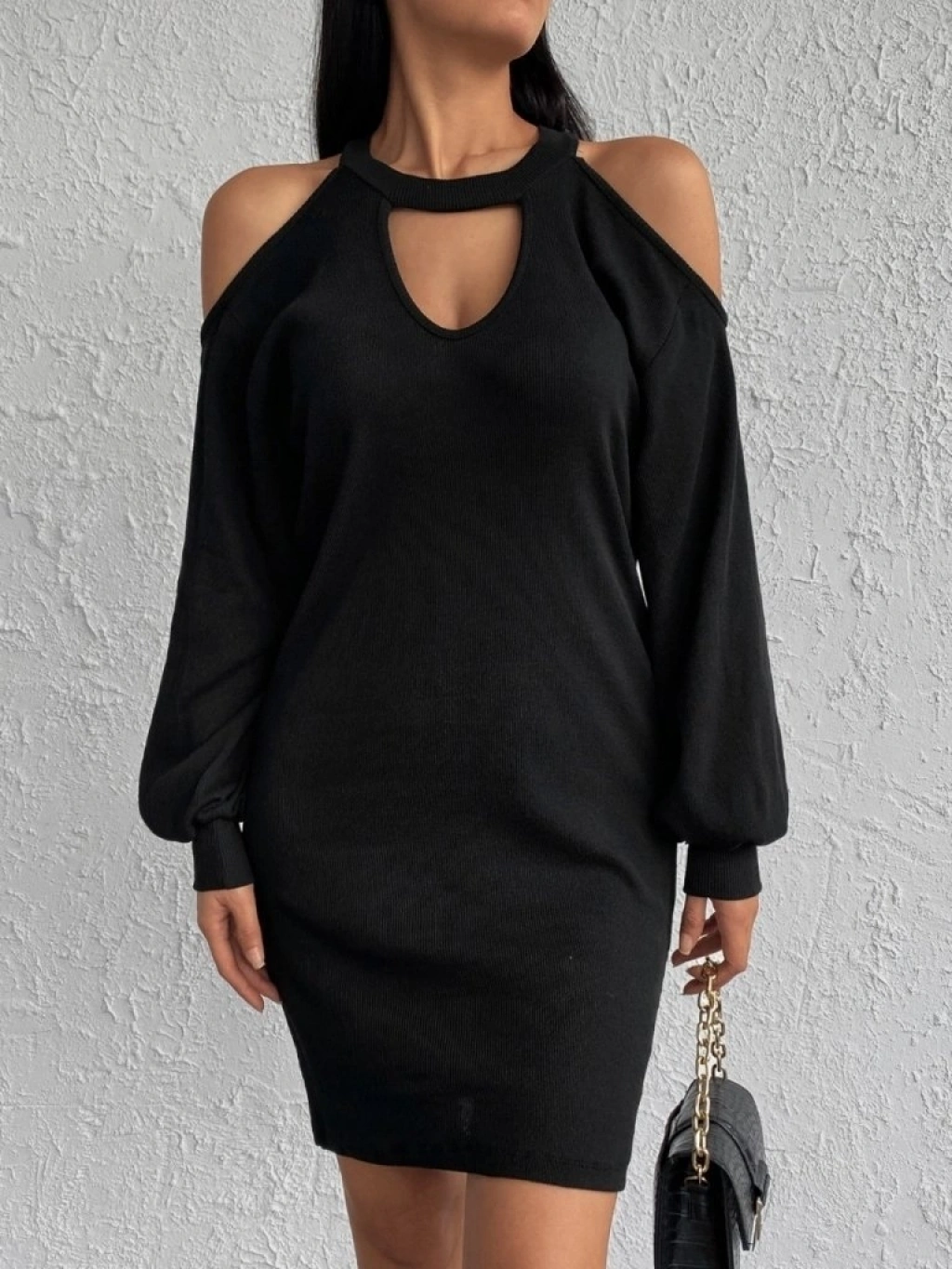 Kadın Uzun Kollu Omuzları Açık Boyundan şerit Detay Kaşkorse Elbise