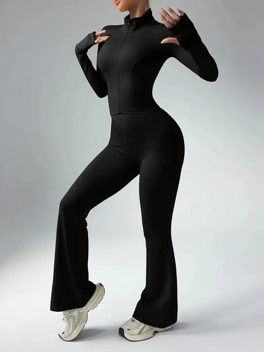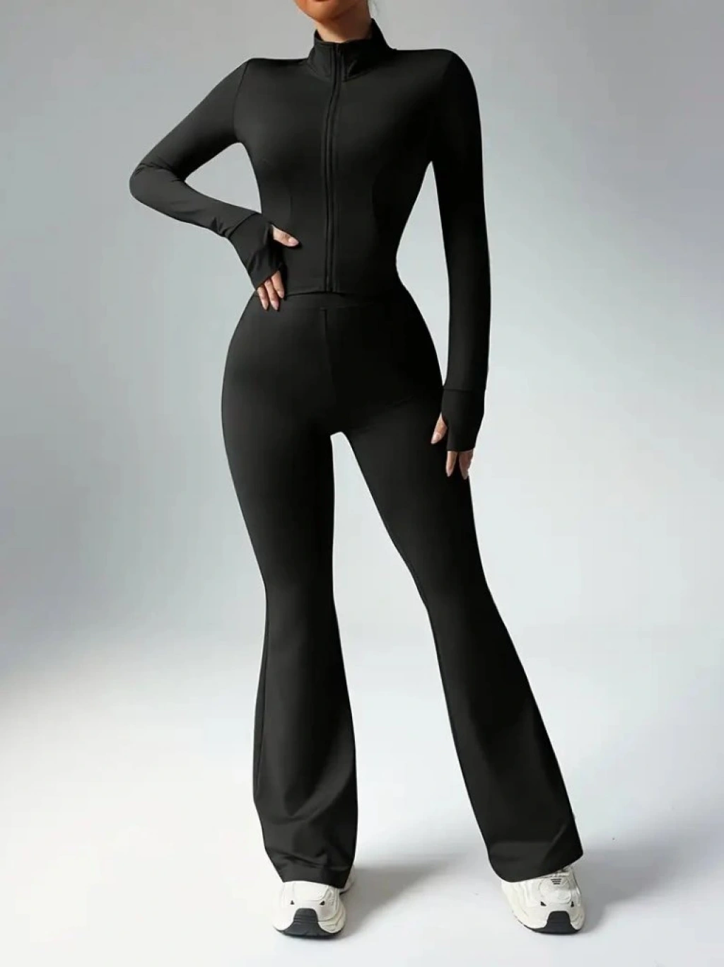 Kadın Uzun Kollu önden Fermuarlı Kısa Dalgıç Bluz Ve Pantolon Ikili Takım