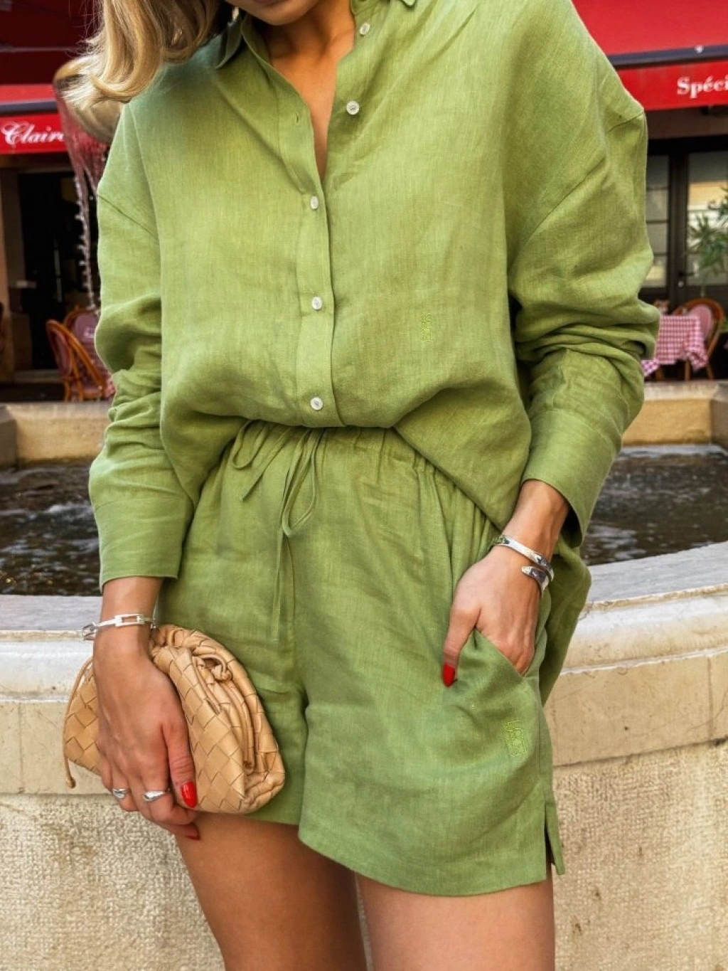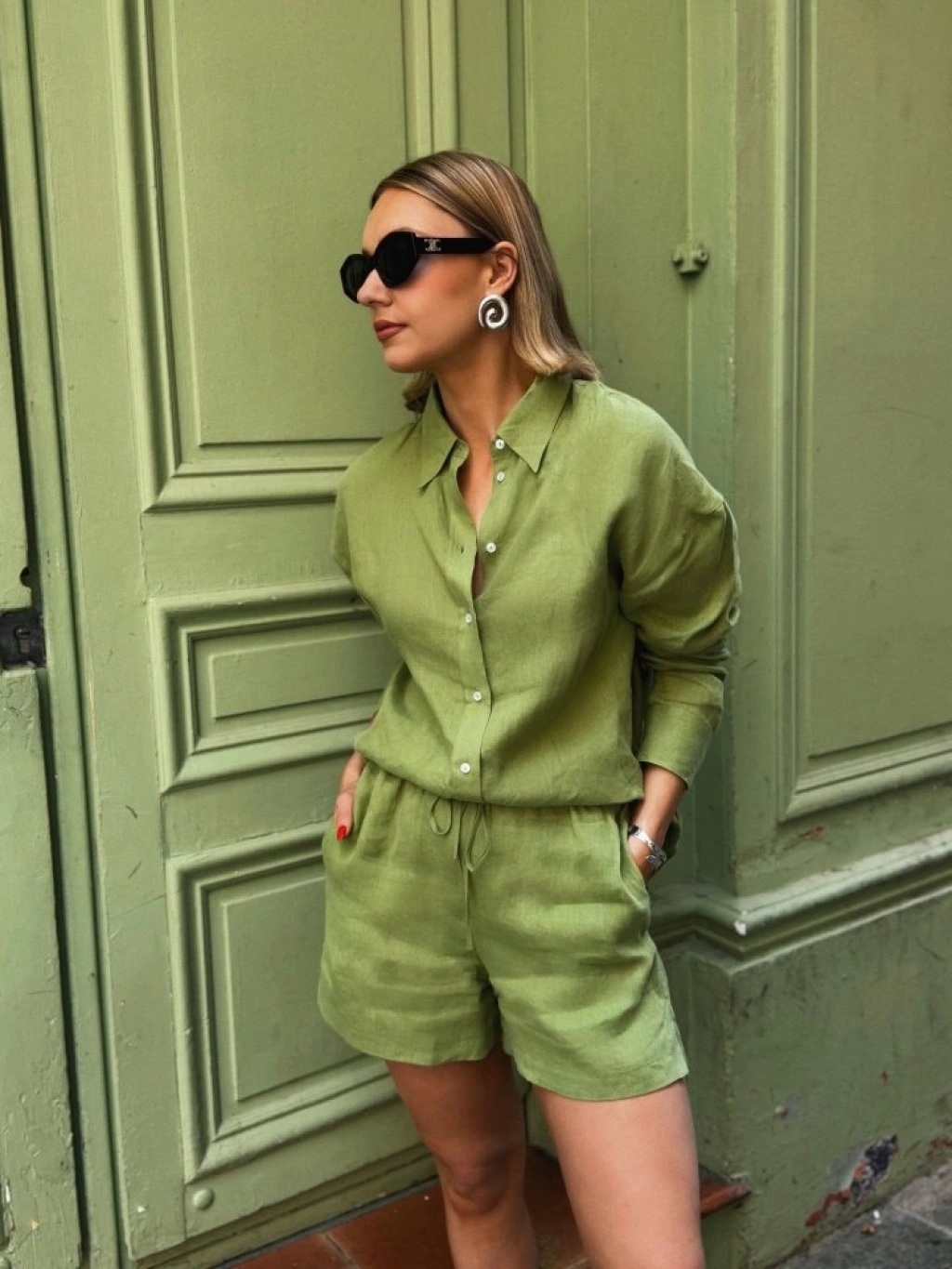 Kadın Uzun Kollu Salaş Gömlek Ve şort Keten Ikili Takım