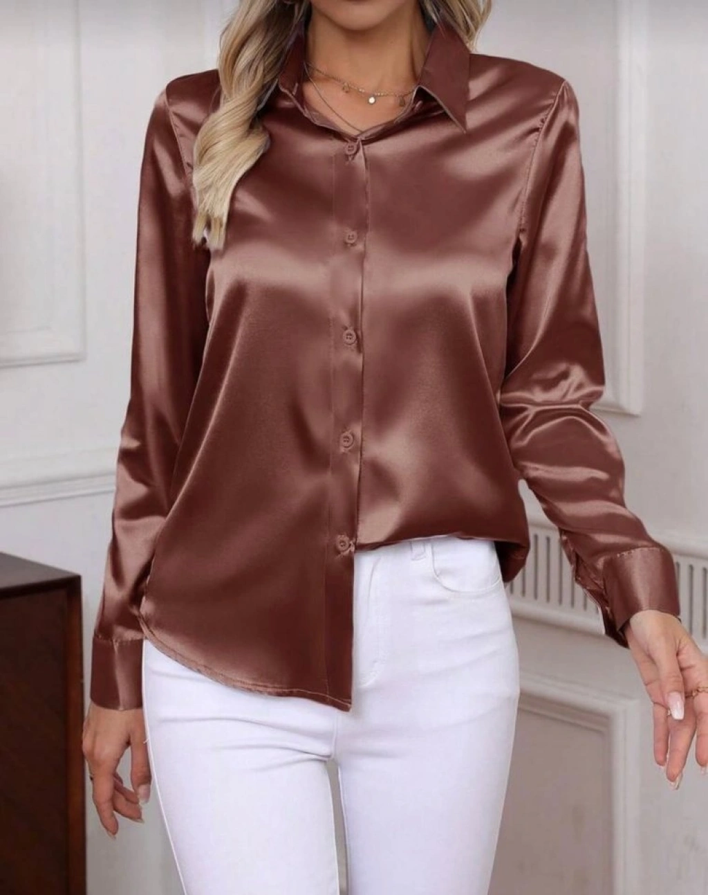 Kadın Uzun Kollu Saten Gömlek