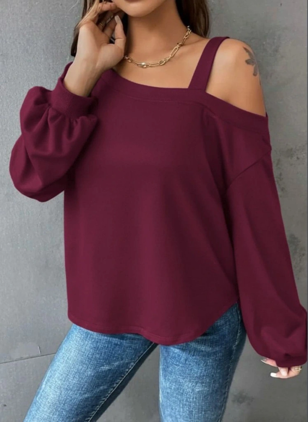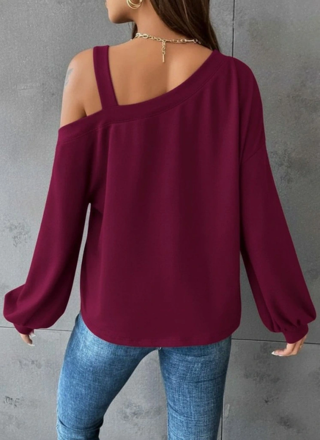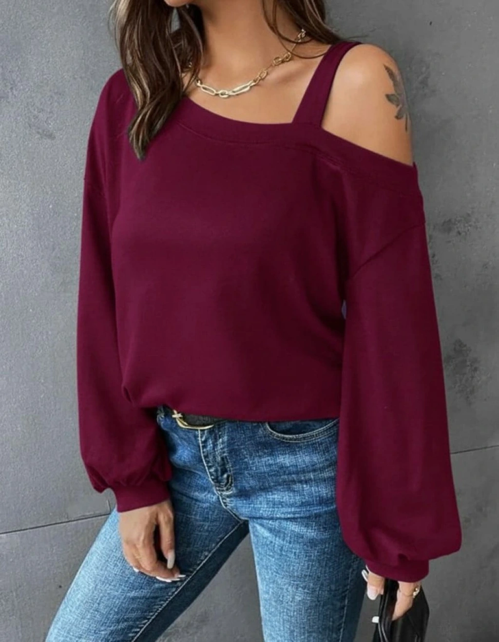 Kadın Uzun Kollu Tek Omuz Askı Detay Salaş Dalgıç Bluz