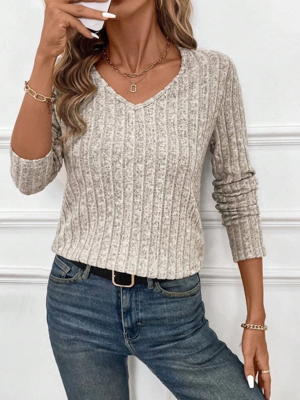 Kadın Uzun Kollu V Yakalı Arkadan Dantel Detaylı şardonlu Kaşkorse Bluz