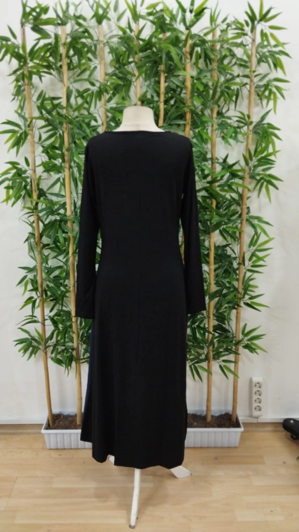 Kadın Uzun Kollu V Yakalı Blok Desenli Viskon Elbise
