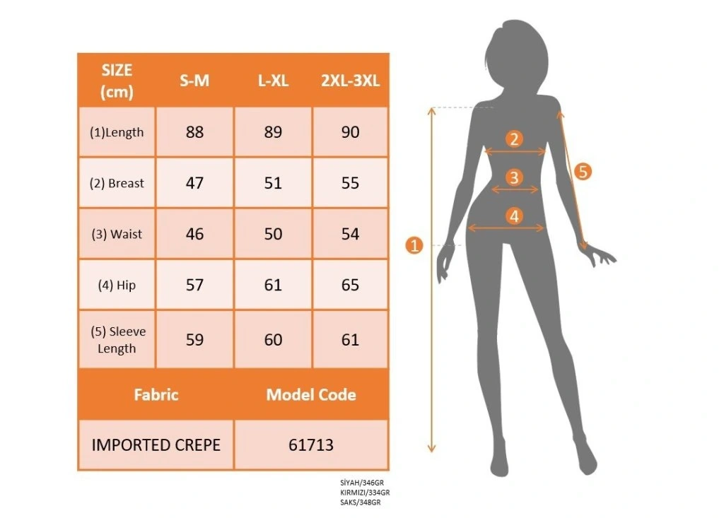 Modelin Ölçüleri: Boy:165, Kg:55, Göğüs:90, Bel:72, Kalça: 100