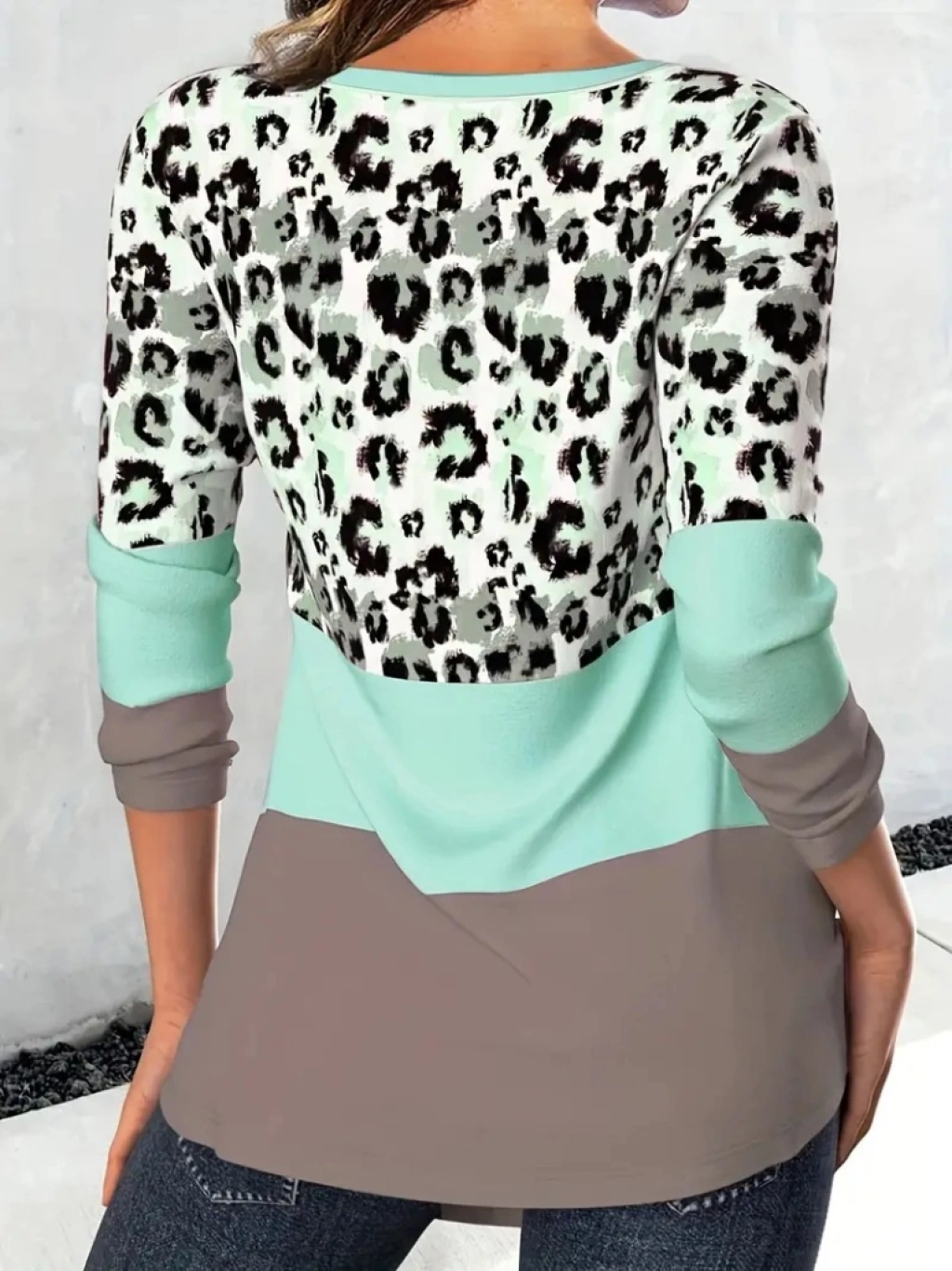 Kadın Uzun Kollu V Yakalı Leopar Baskılı şardonlu Dalgıç Bluz