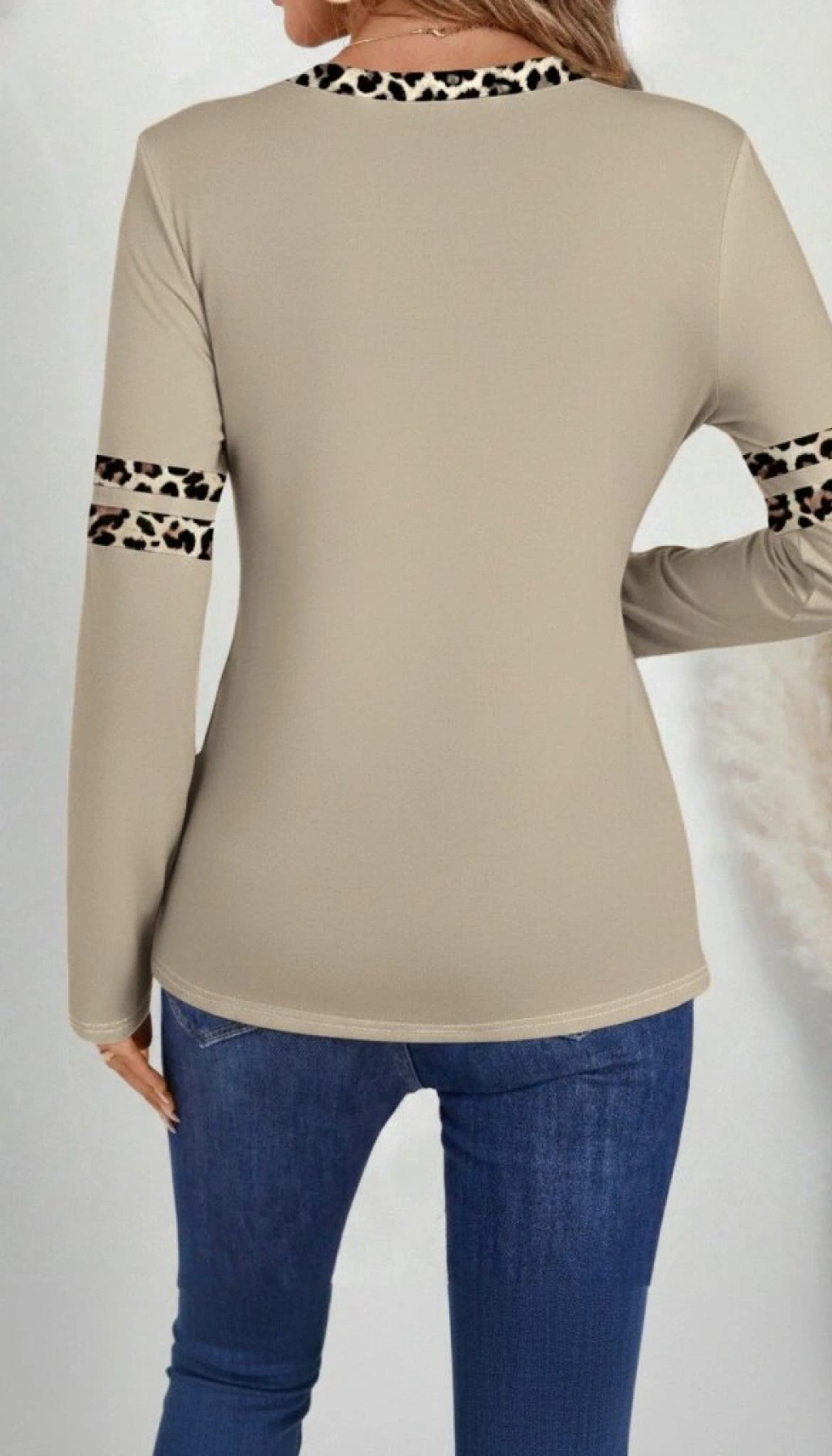 Kadın Uzun Kollu V Yakalı Leopar Desenli Viskon Iki Iplik Bluz