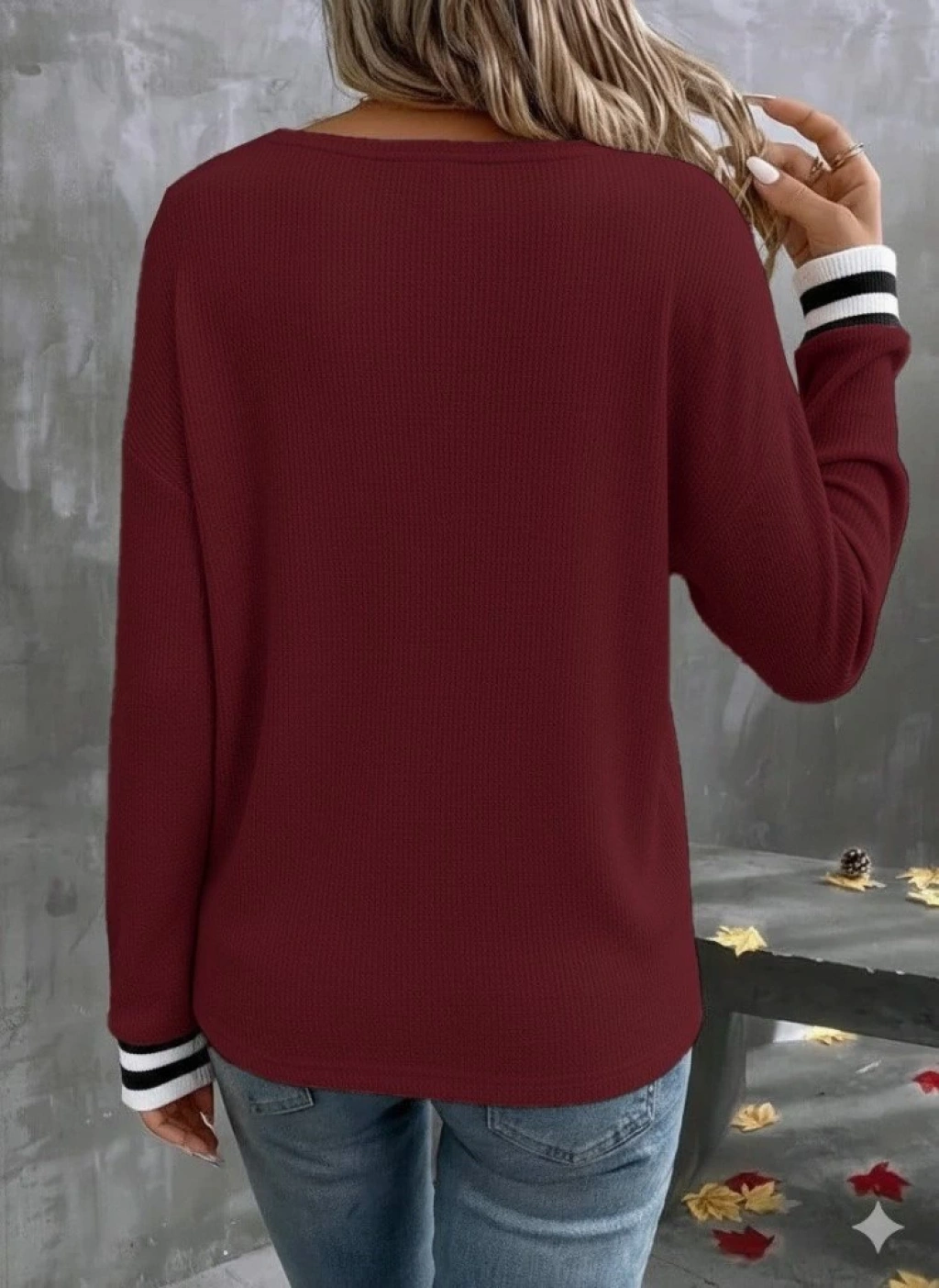 Kadın Uzun Kollu V Yakalı Waffle Bluz
