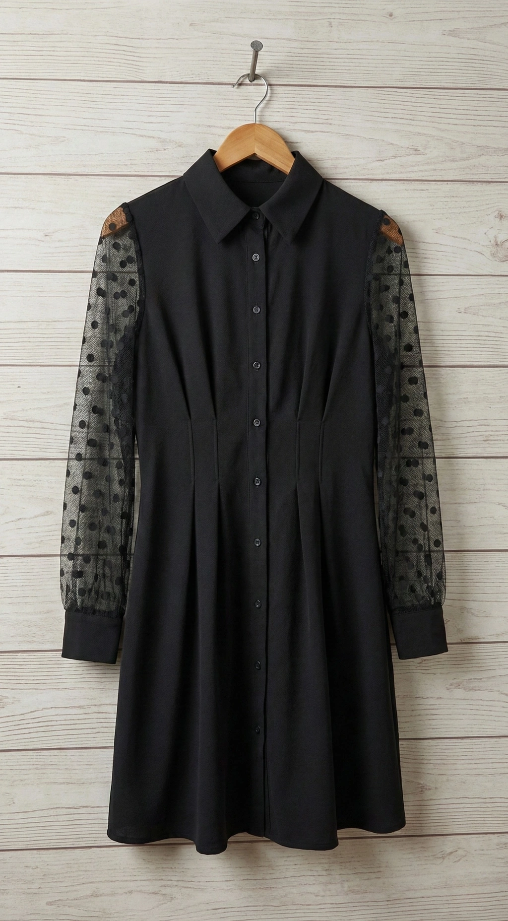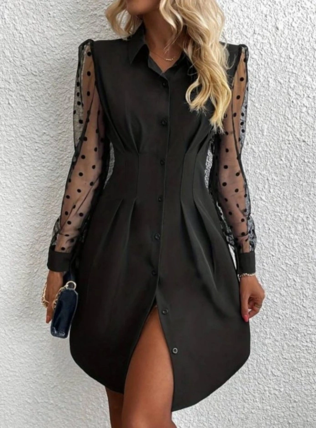 Kadın Uzun Kollu Yakalı Düğmeli Mini Ithal Krep Elbise