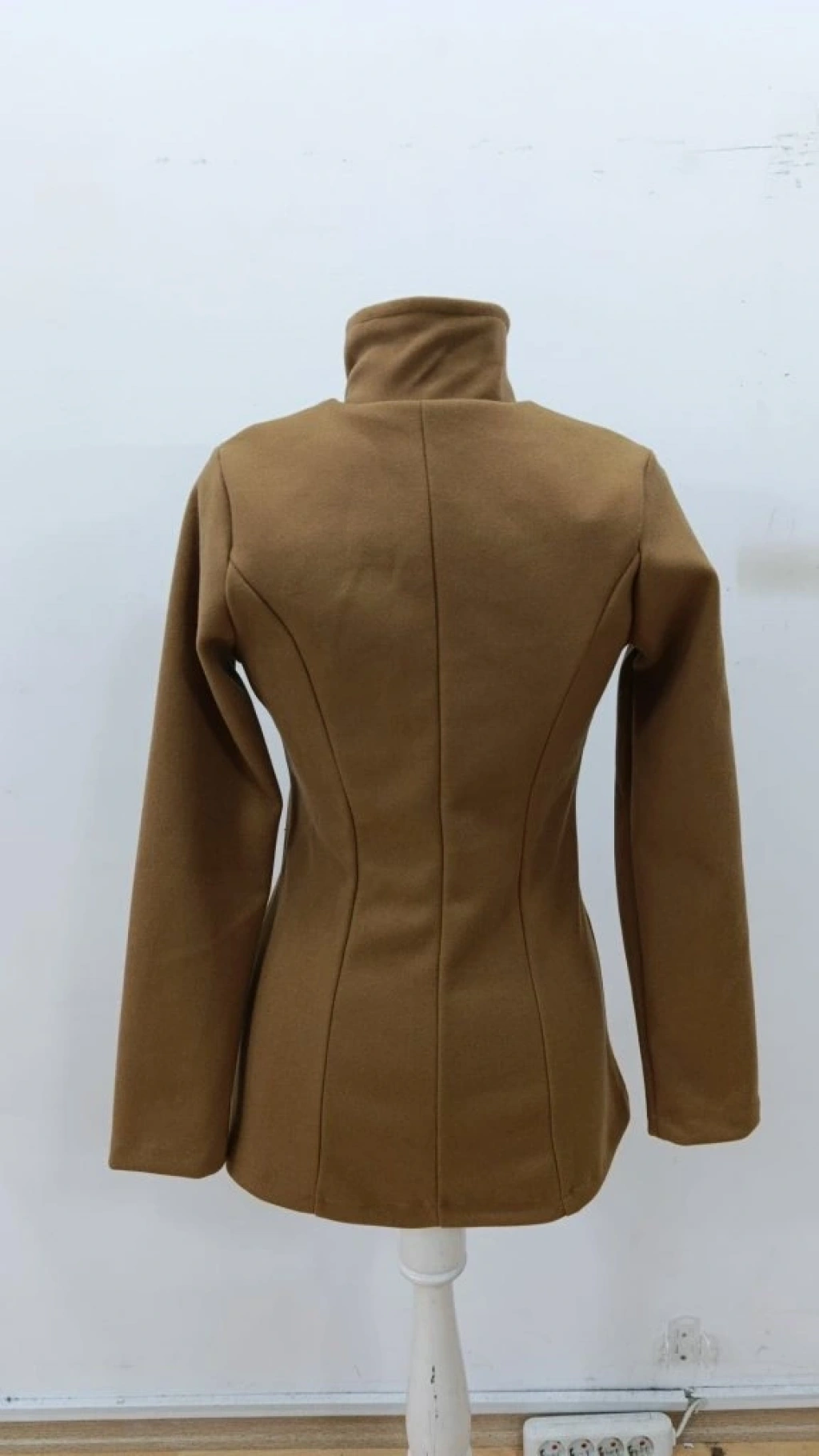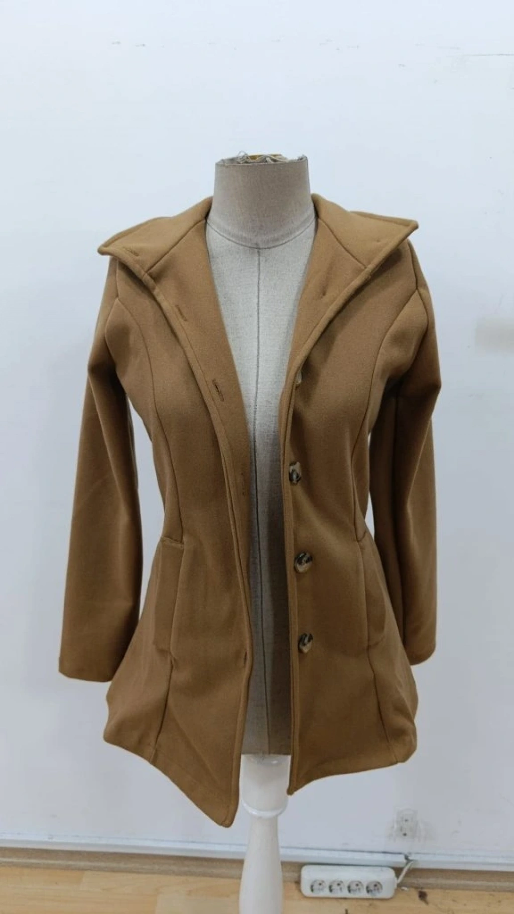 Kadın Uzun Kollu Yakalı önden Düğmeli Astarsız Ithal Kaşe Kahve Kaban