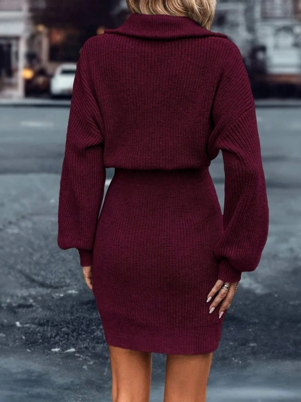 Kadın Uzun Kollu Yakası Fermuarlı Mini Triko Elbise