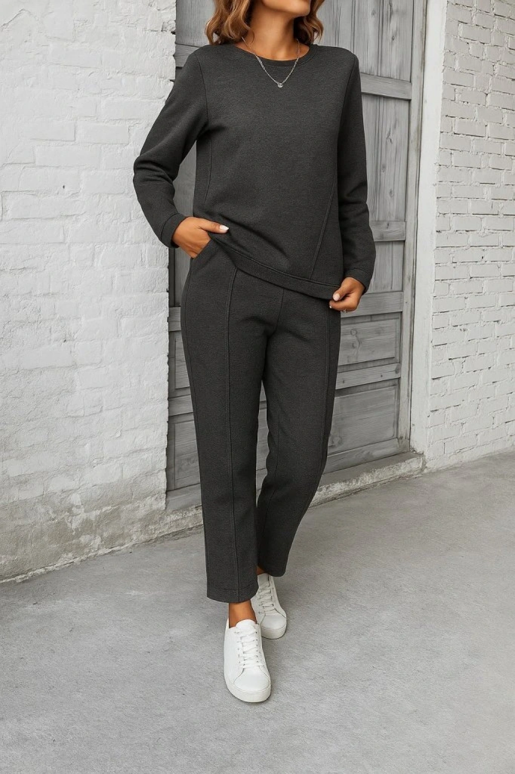 Kadın Uzun Kollu Yanları Nervurlu Viskon Iki Iplik Ve Pantolon Ikili Takım