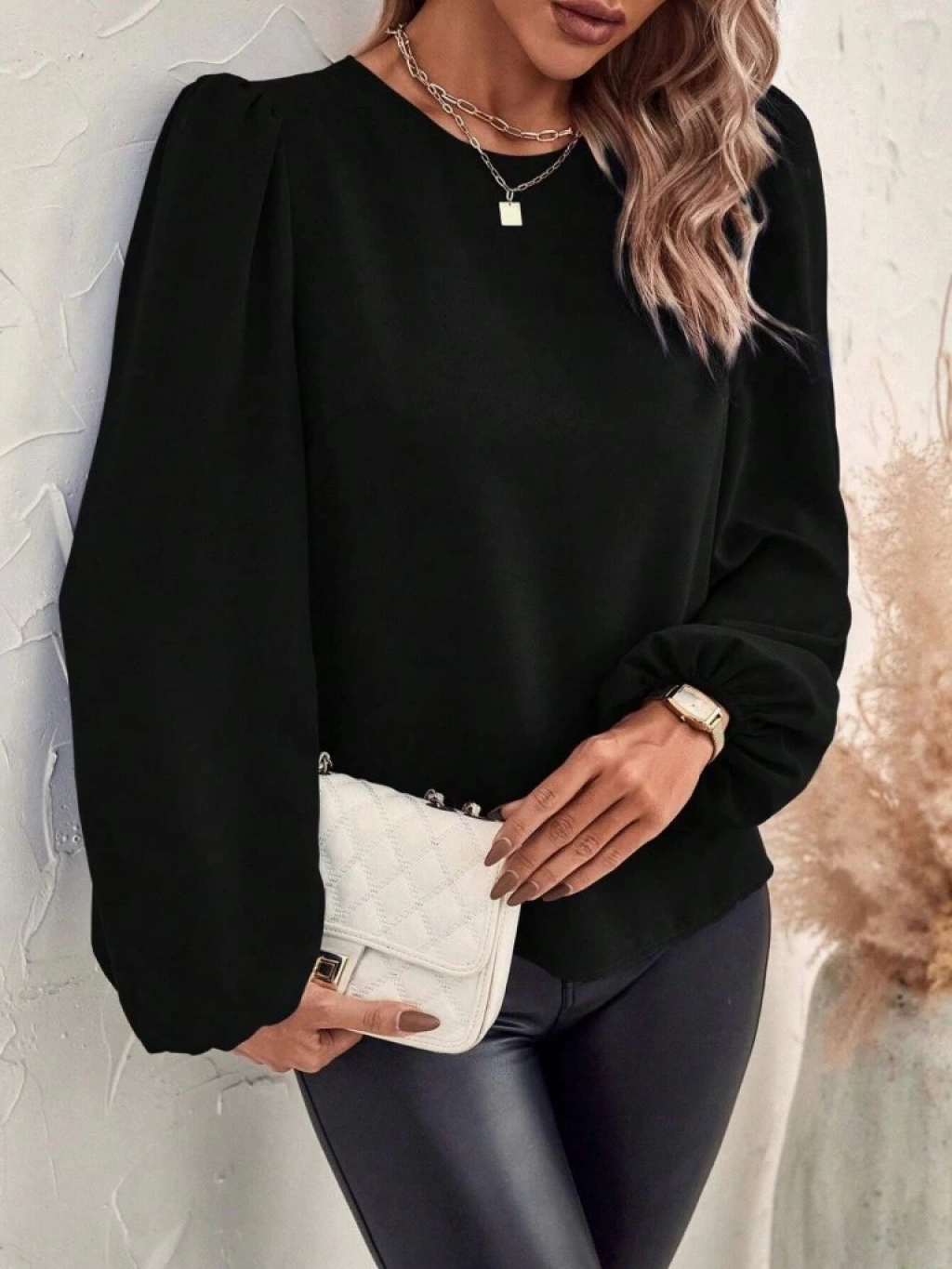 Kadın Uzun Kollu Yuvarlak Yaka Arkadan Bağcıklı Salaş Ithal Krep Bluz