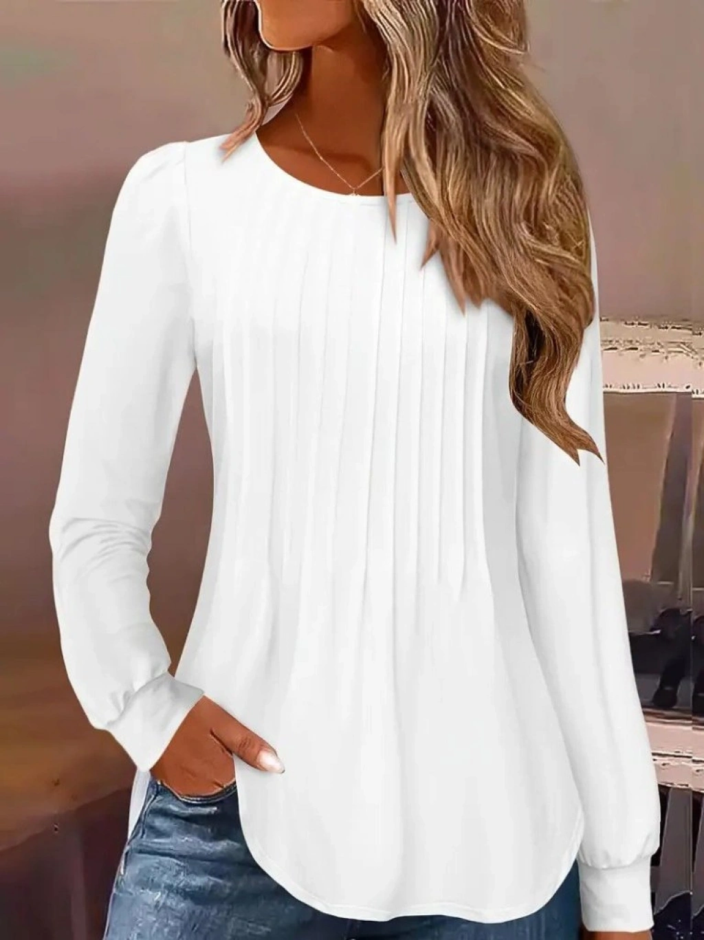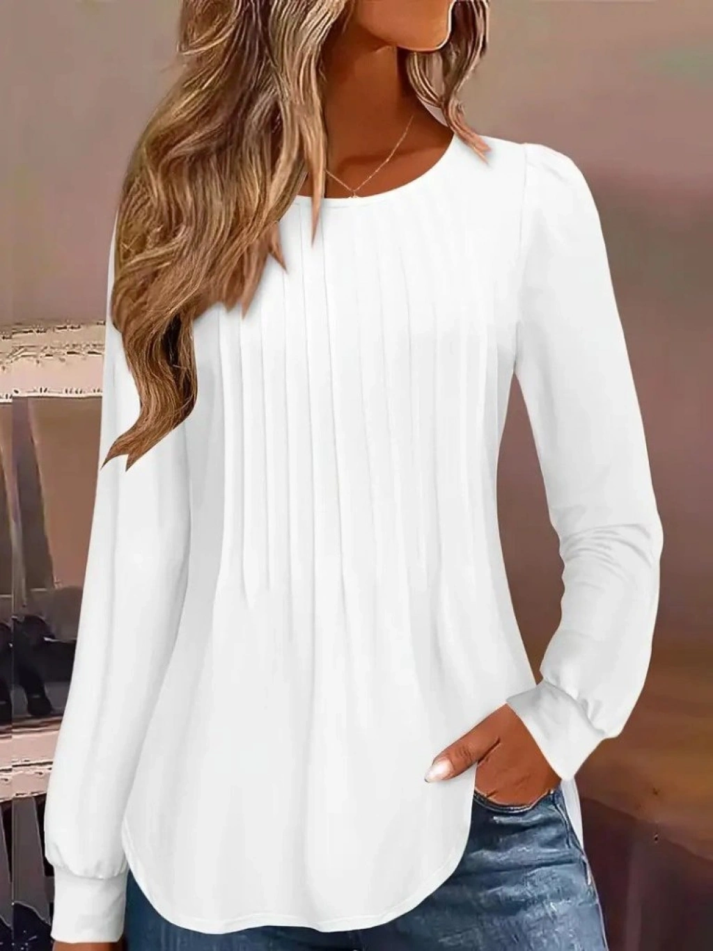Kadın Uzun Kollu Yuvarlak Yaka Nervürlü Bluz