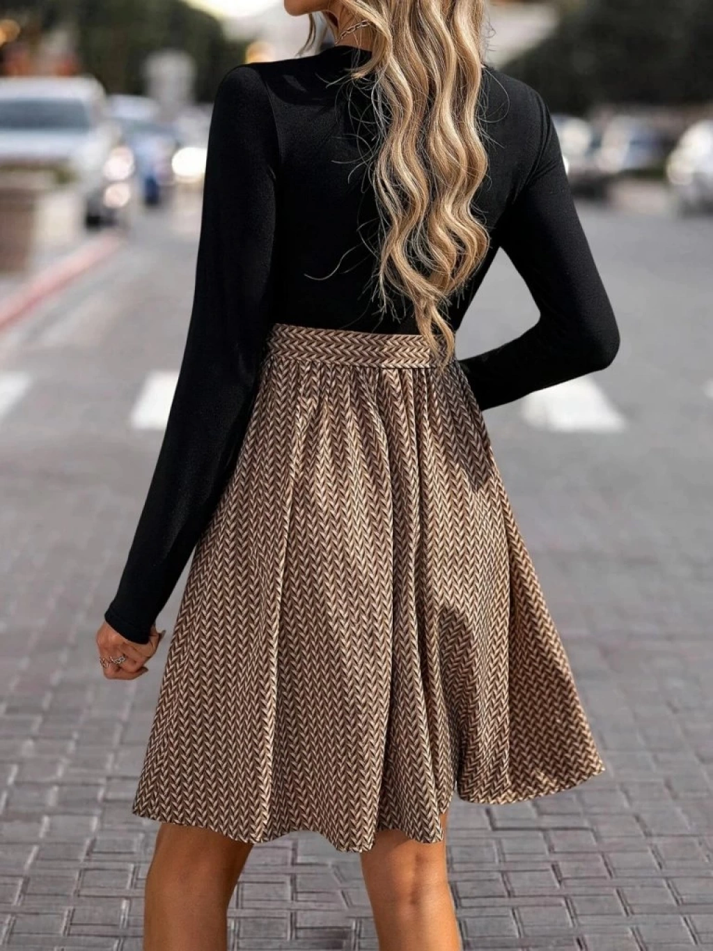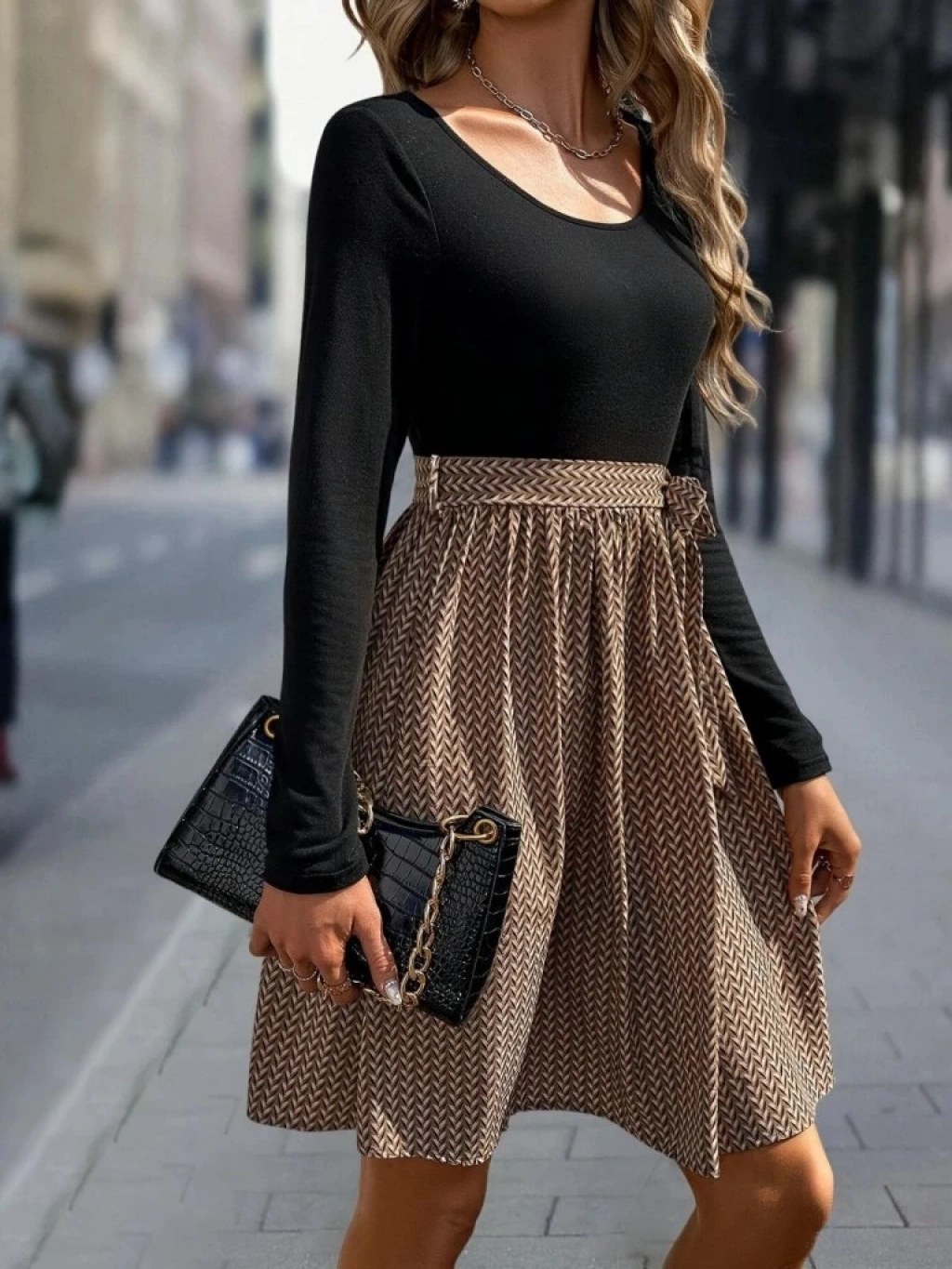 Kadın Uzun Kollu Yuvarlak Yaka üst Viskon Alt Süprem Midi Elbise