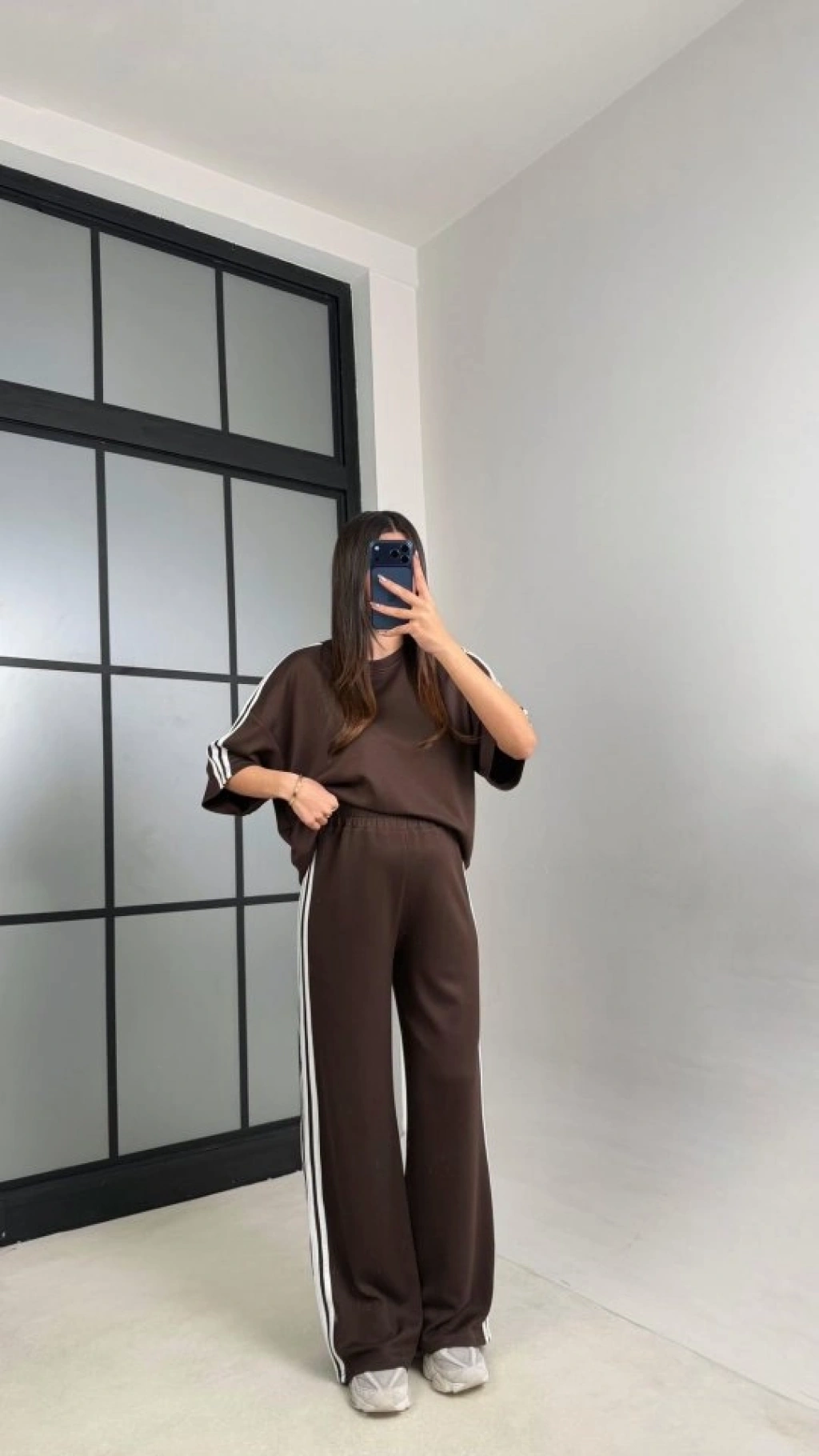 Kadın Yarasa Kol Yanları şerit Detay Modal Kumaş Ikili Takım