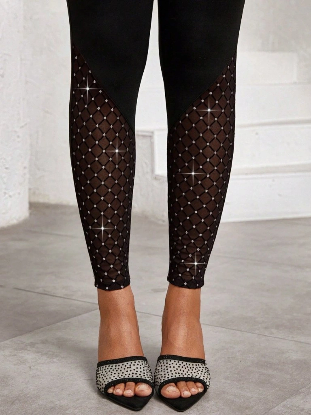 Kadın Yüksek Bel ışıltılı Tül Geometrik Detaylı Dalgıç Tayt