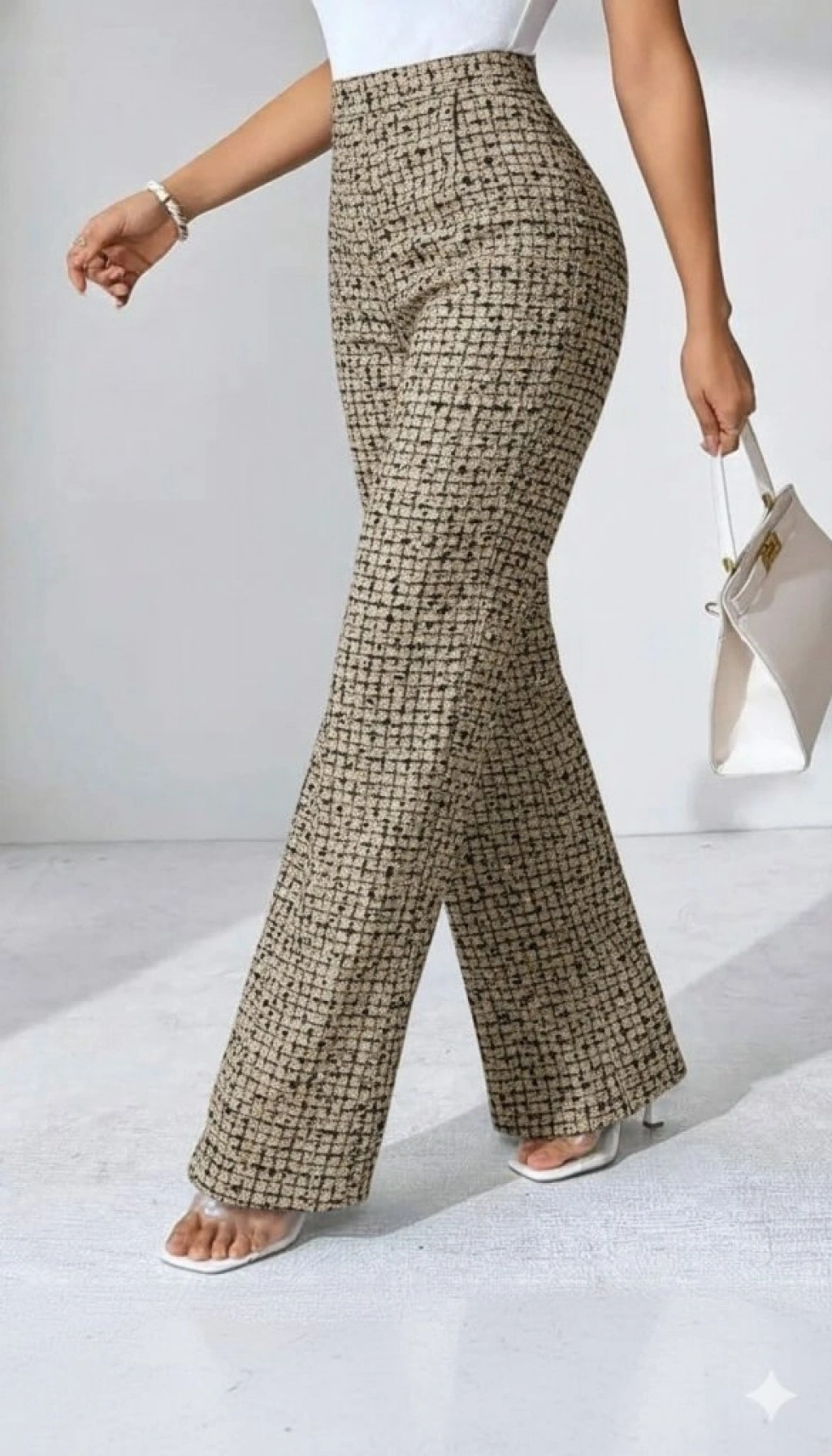 Kadın Yüksek Bel Paçaya Doğru Geniş Dokuma Pantolon