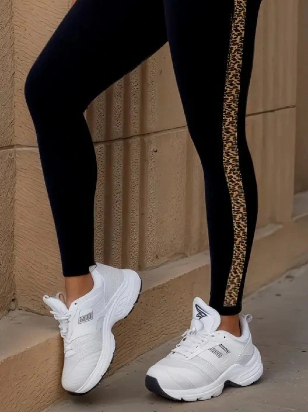 Kadın Yüksek Bel Yandan Leopar Desen Detaylı Dalgıç Tayt