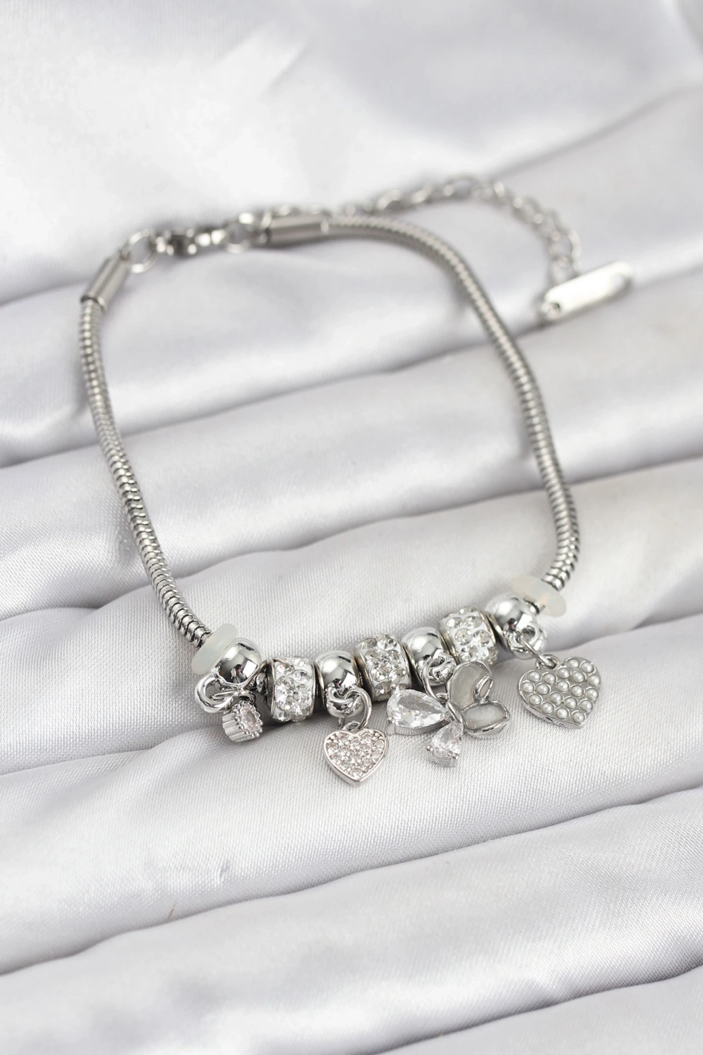 Kelebek Charmlı Gümüş Renk Kadın Bileklik