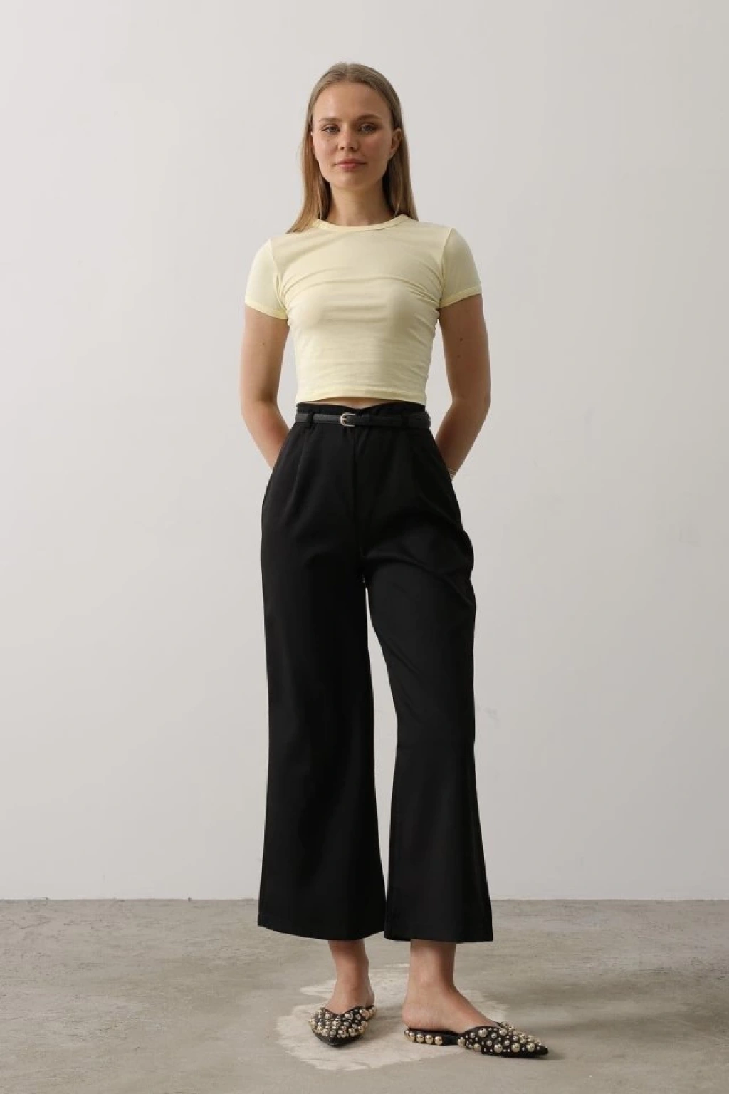 Kemer Pens Detaylı Pantolon - Siyah