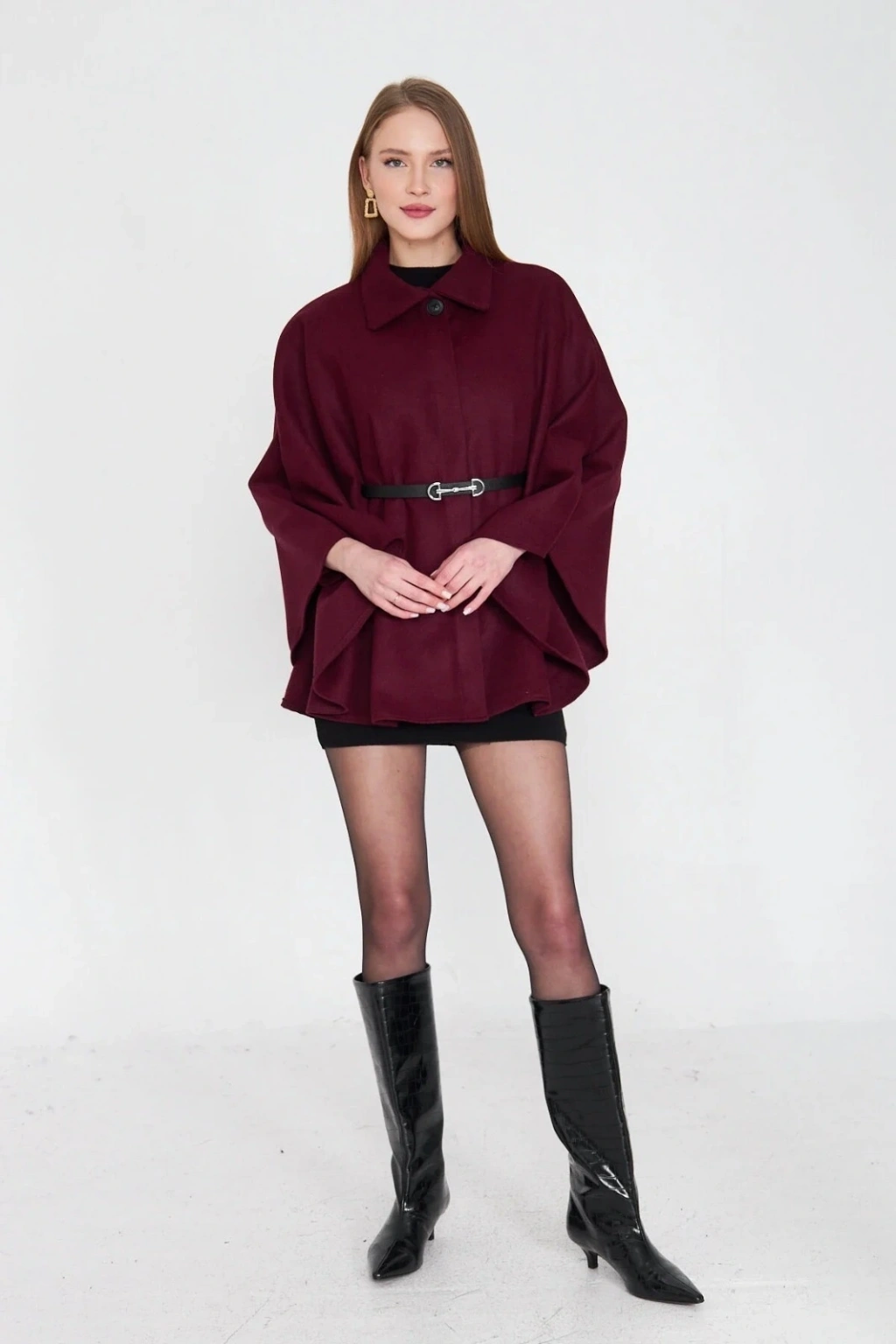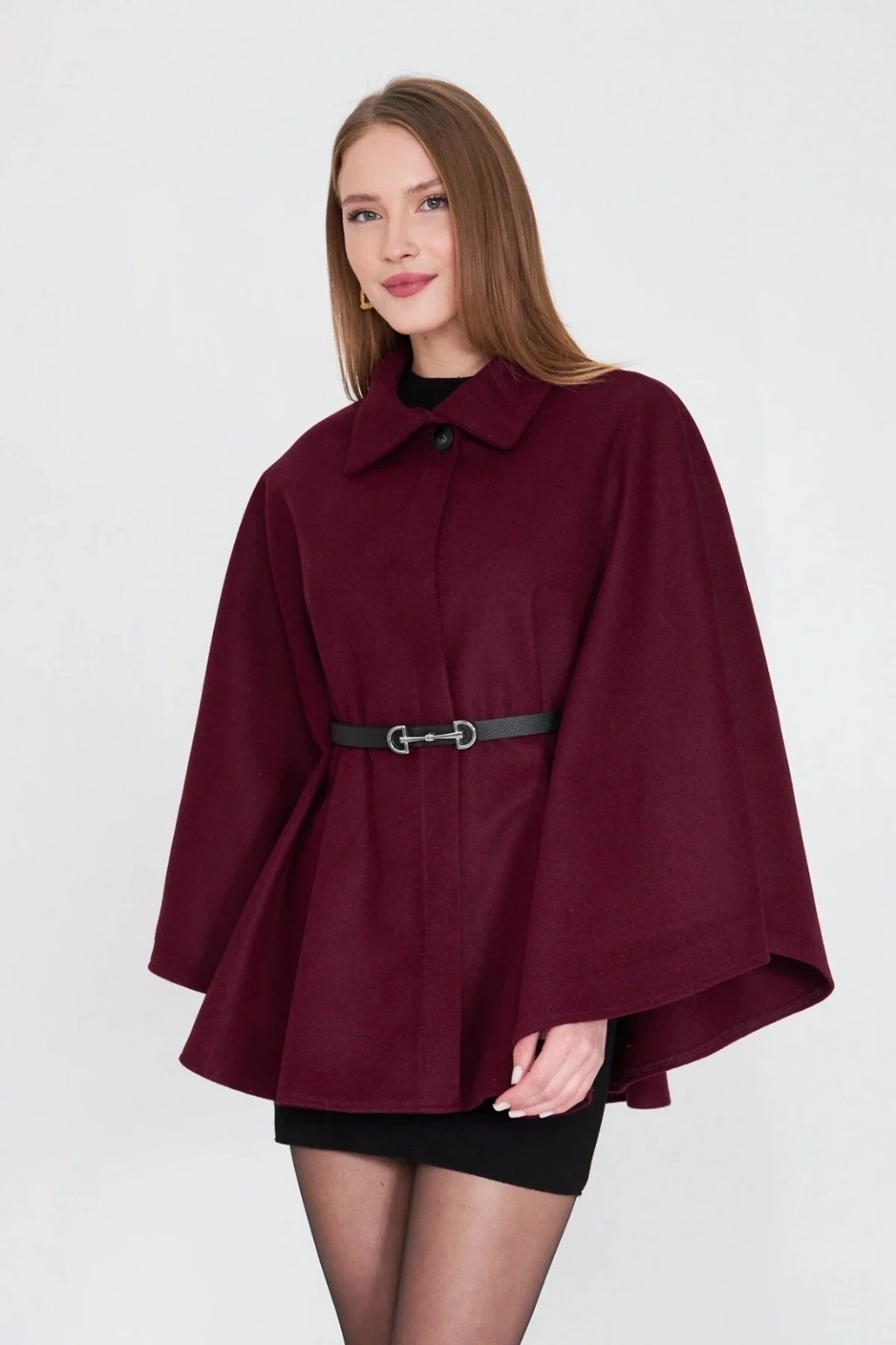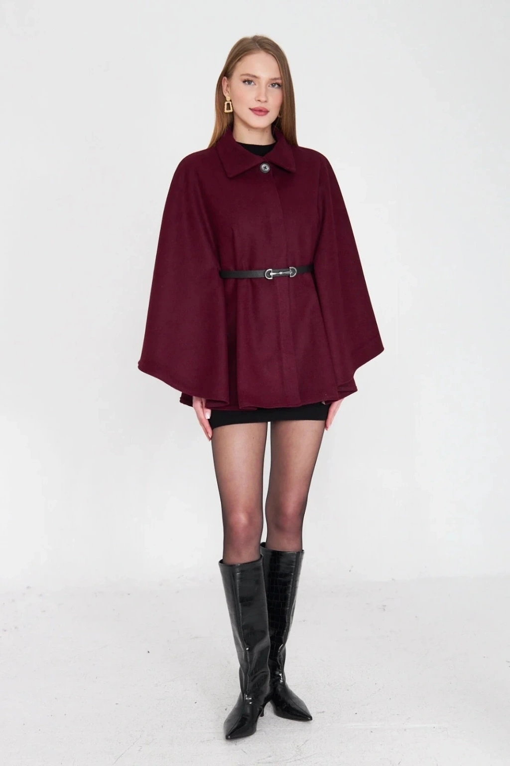 Cepli kuşaklı kaşe kaban kırmızı st26458