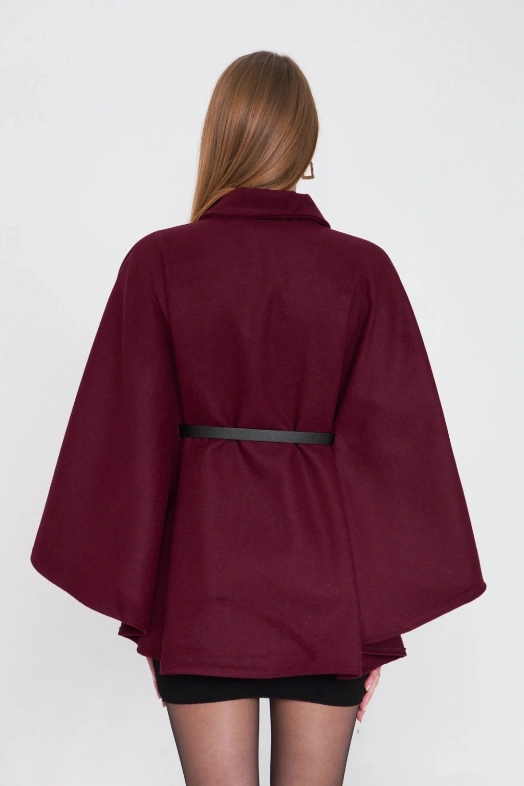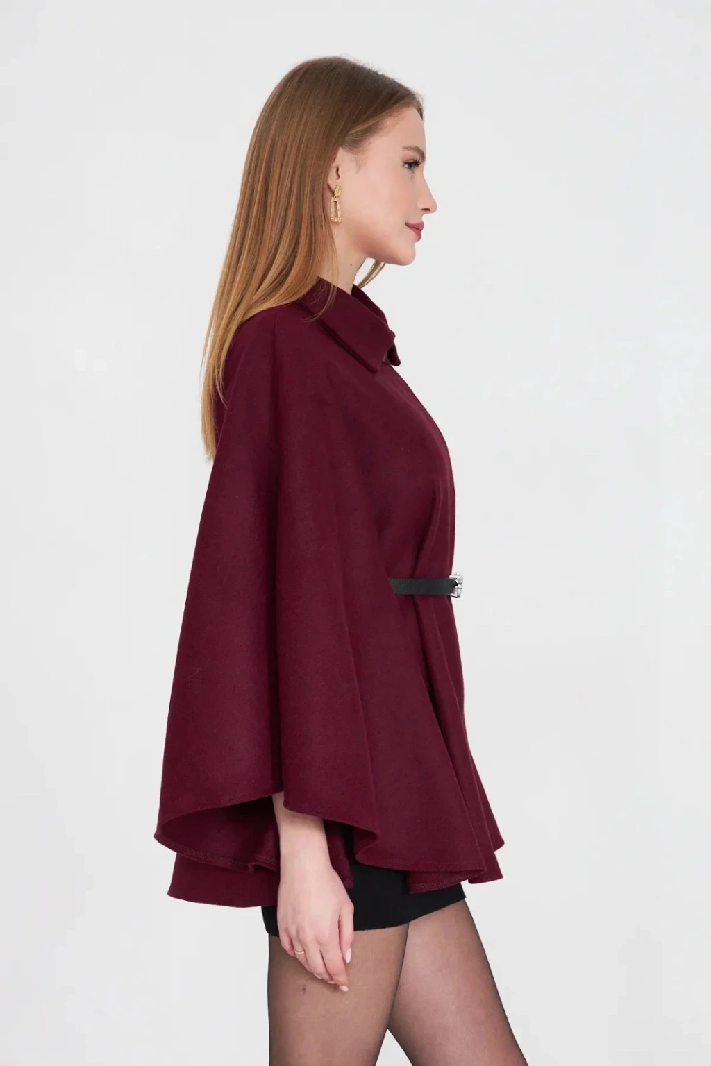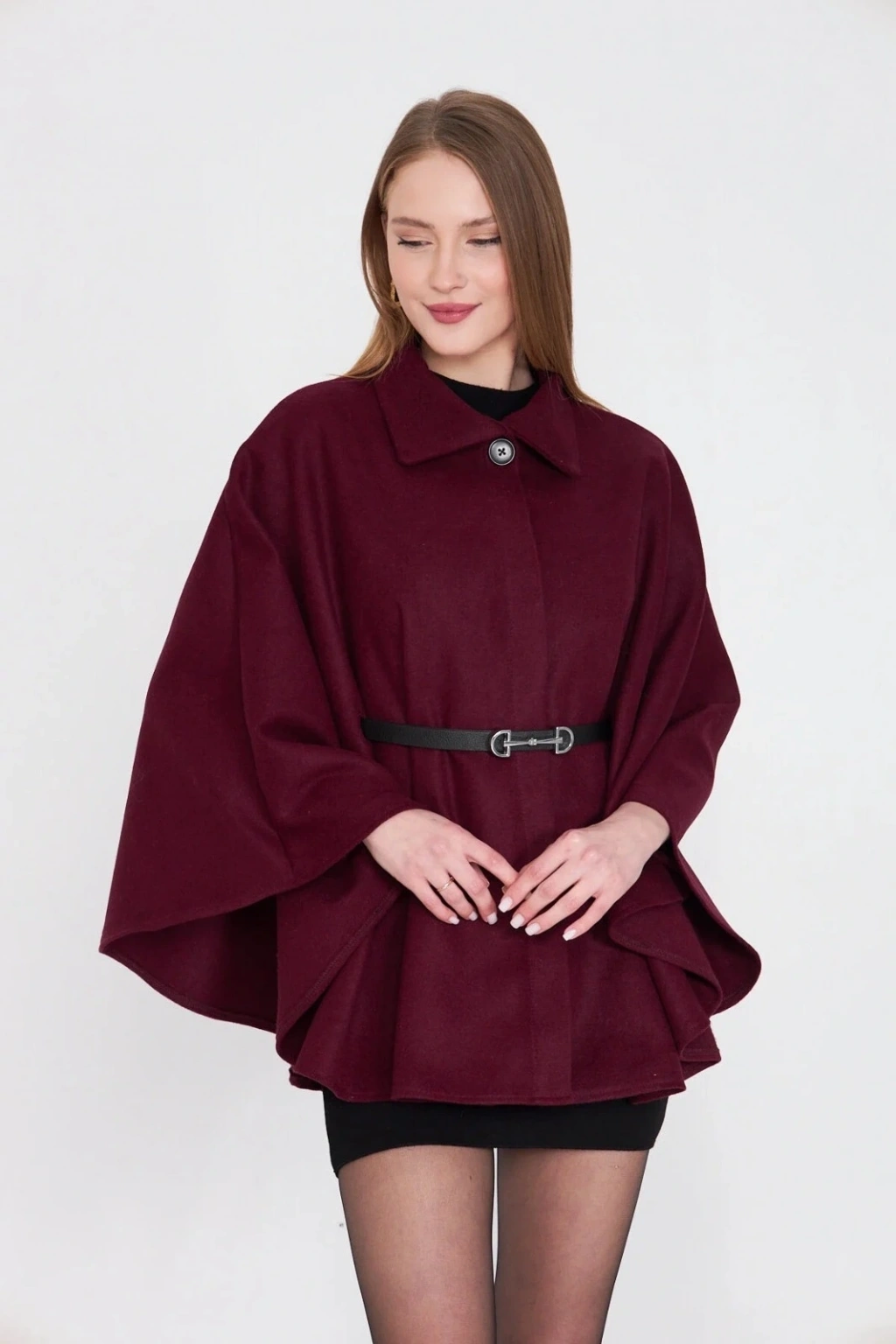 Cepli kuşaklı kaşe kaban kırmızı st26458