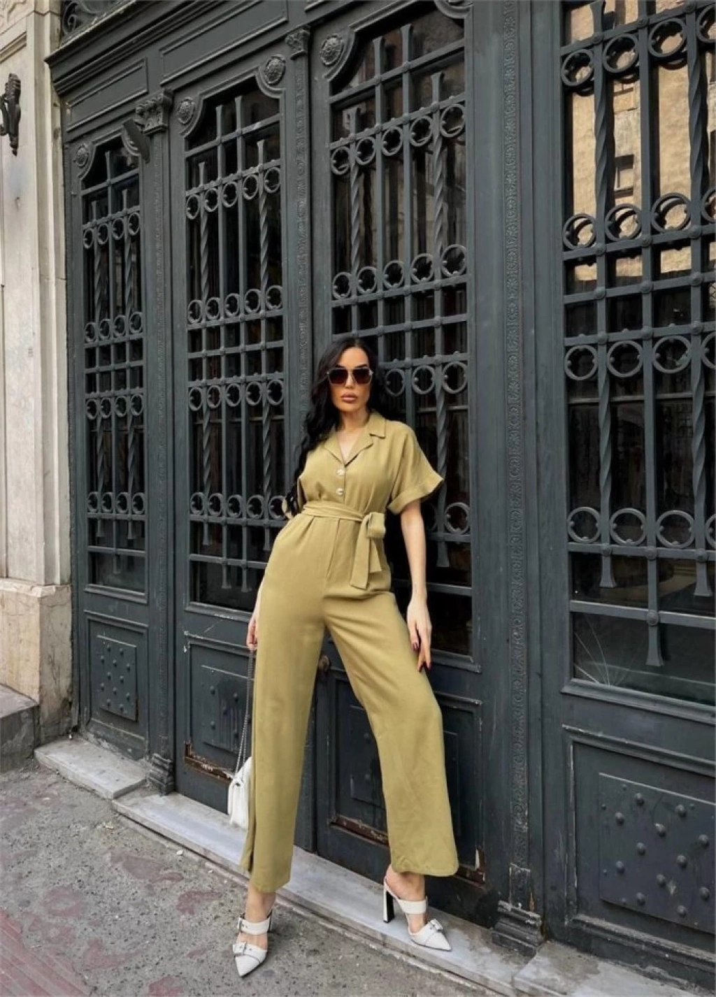 KETEN TULUM BEL BAĞLAMA DETAYLI - Yeşil