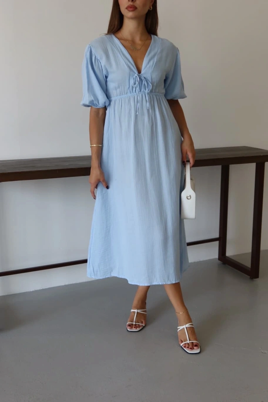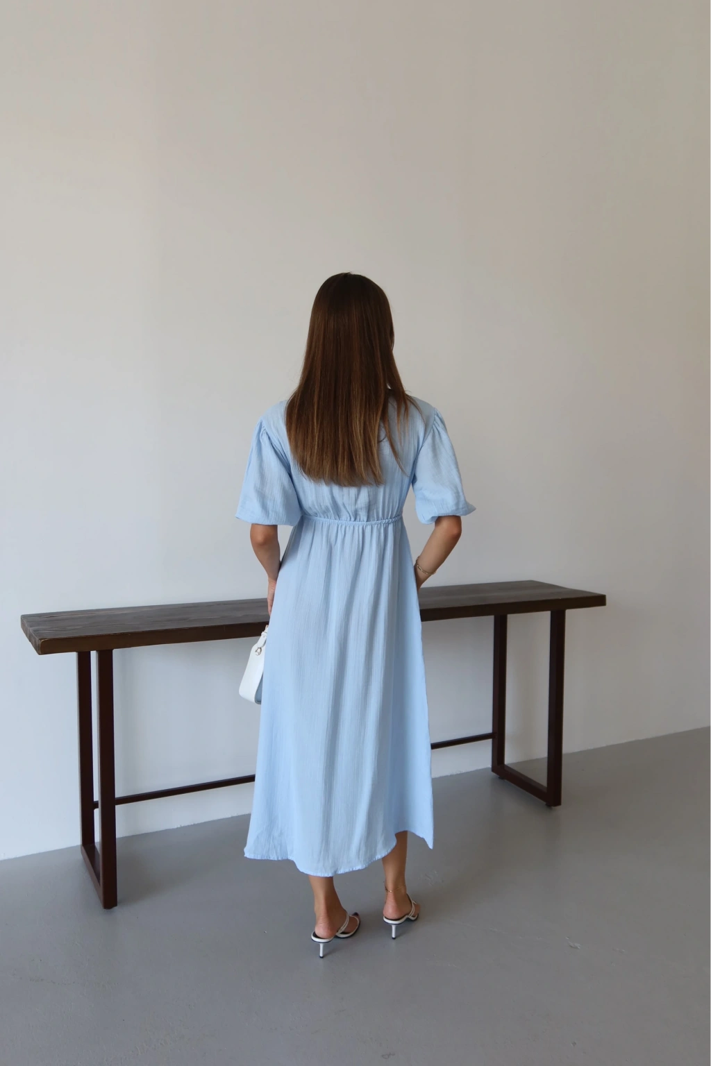 Askılı ch kumaş düğmeli elbise pudrabeyaz h265007