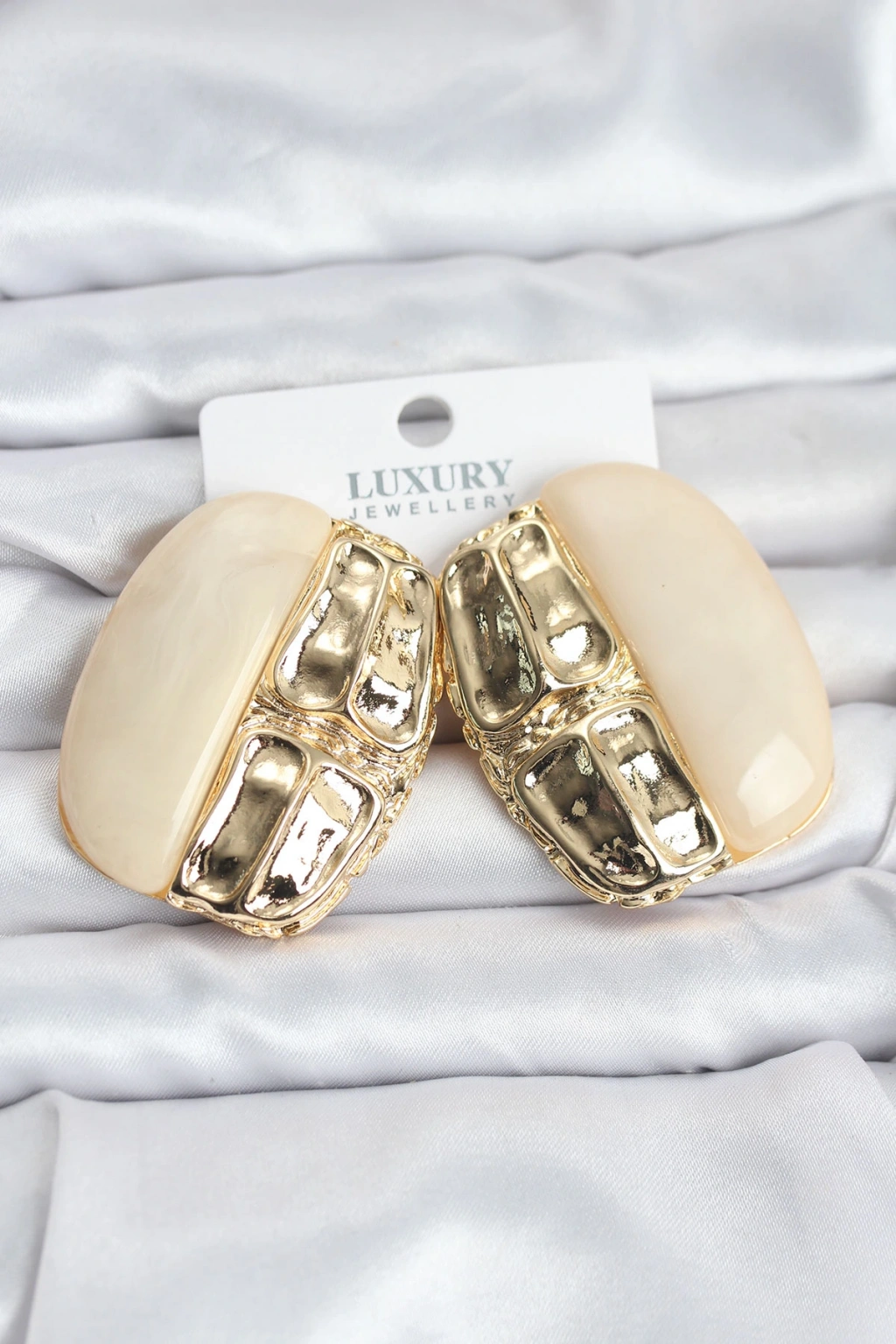 Krem Renk Pirinç Vintage Kadın Küpe
