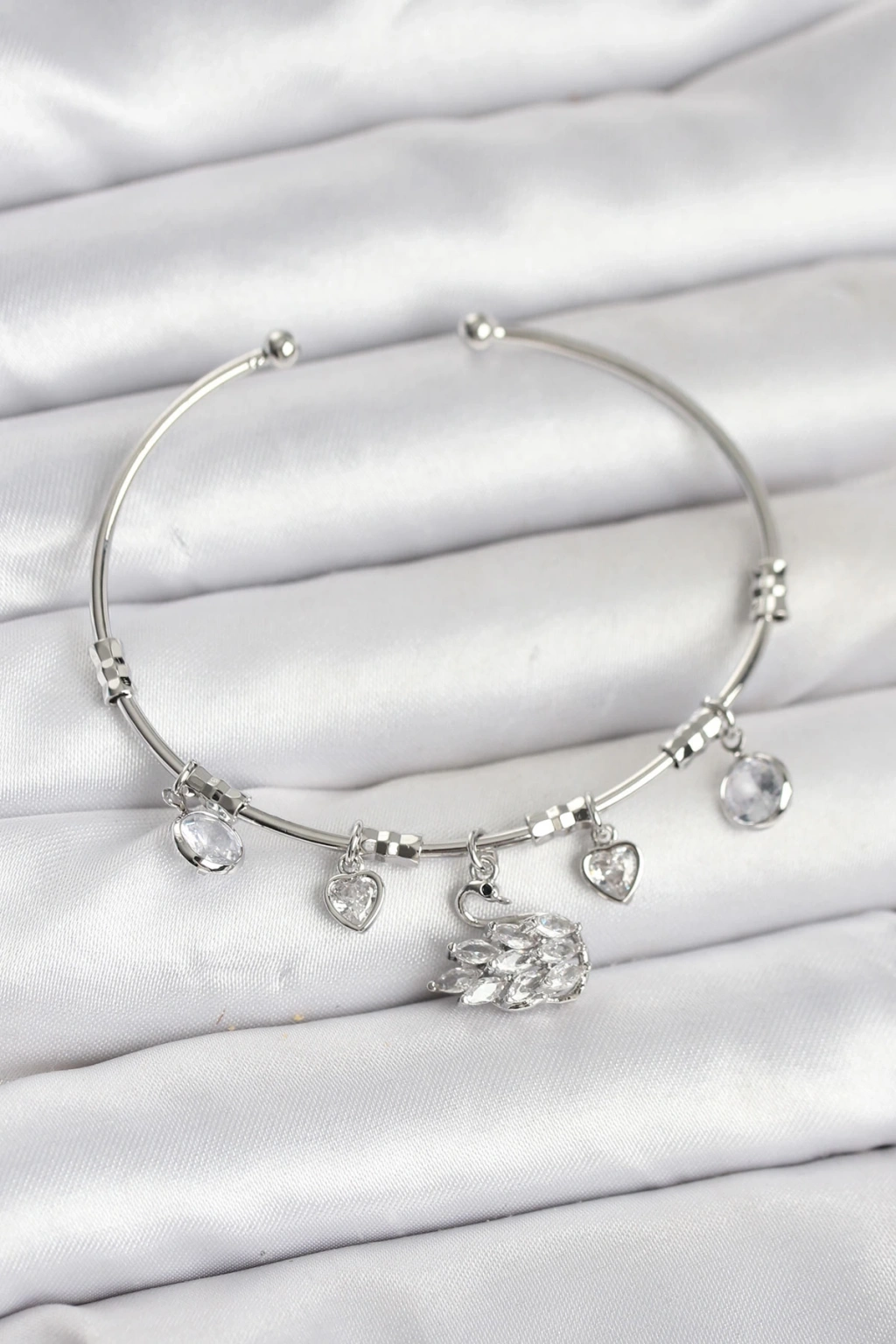Kuğu Charmlı Gümüş Renk Kadın Bileklik