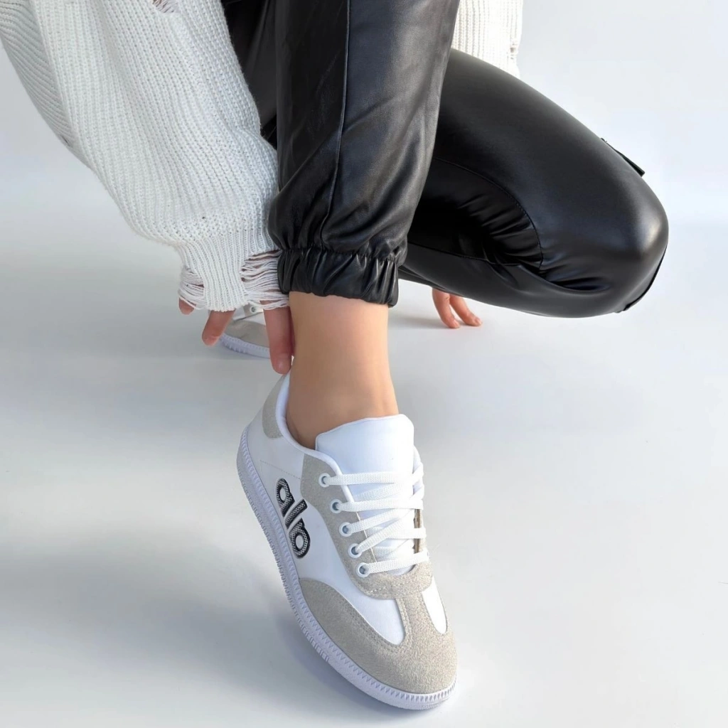 Feort Beyaz Triko Bağcıklı Spor Ayakkabı