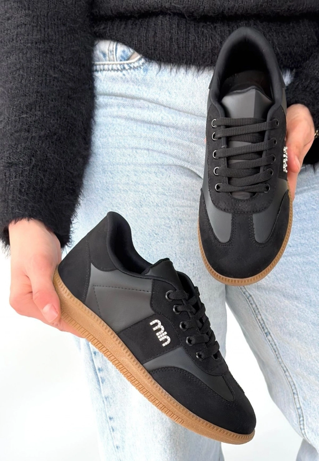 Mopin Siyah Deri Bağcıklı Spor Ayakkabı