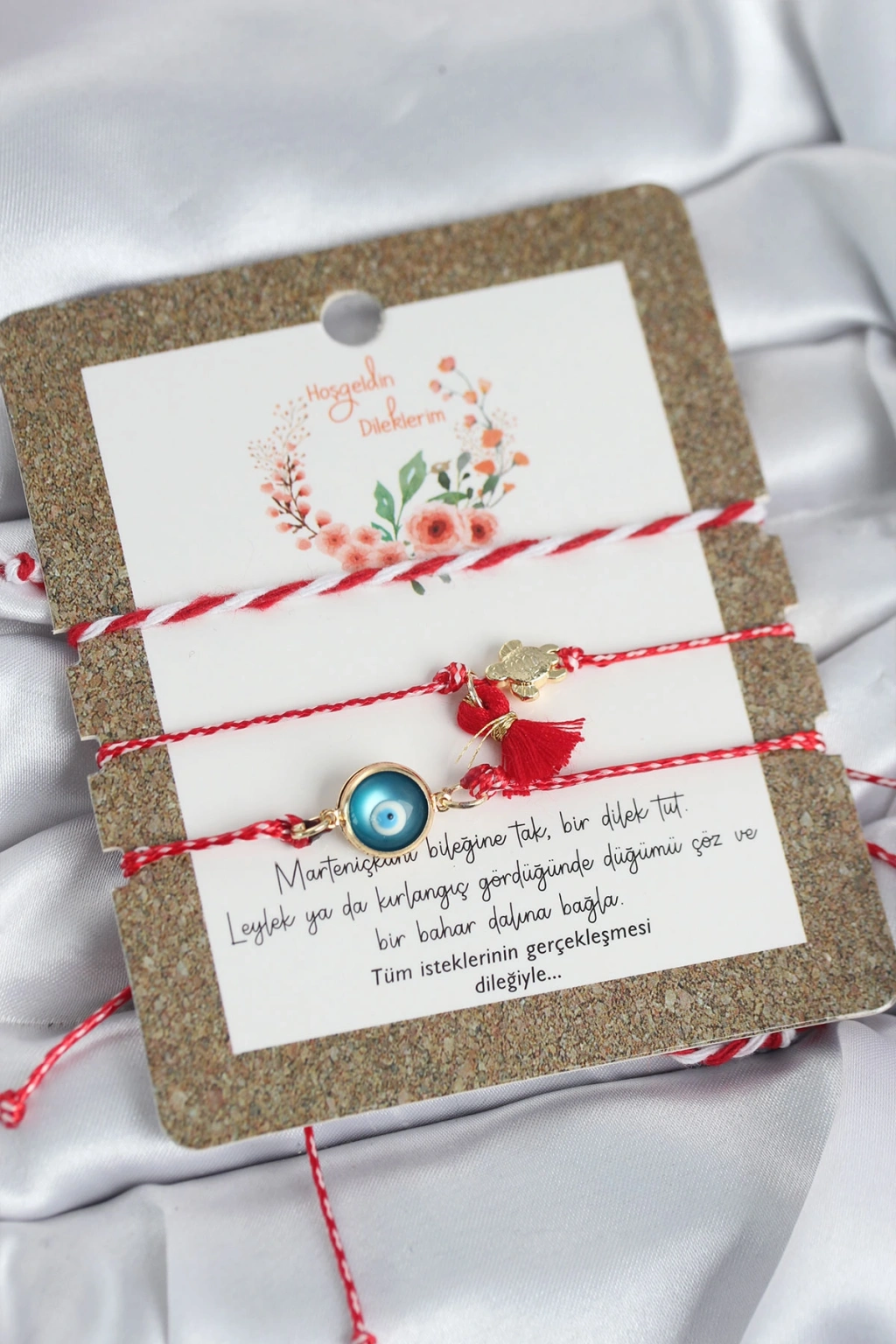 Bileklikler asansörlü makromedir. Objelerdeki renkler karışık renkte gönderilebilir.Martenicka Hikâyesi ve KökeniMartenicka geleneği, baharın gelişi, doğanın uyanışı ve iyilik–sağlık dilekleri ile ilişkilidir.En yaygın anlatıya göre:Balkan mitolojisinde “Baba Marta” (Mart Ana) adında bir figür bulunur.Baba Marta’nın yüzü neşeli olduğunda hava ısınır,Kızdığında ise yeniden soğur veya kar yağar.İnsanlar Baba Marta’nın yüzünü güldürmek, baharı çağırmak ve kötü ruhları uzak tutmak için kırmızı-beyaz ipten Martenicka takarlar.