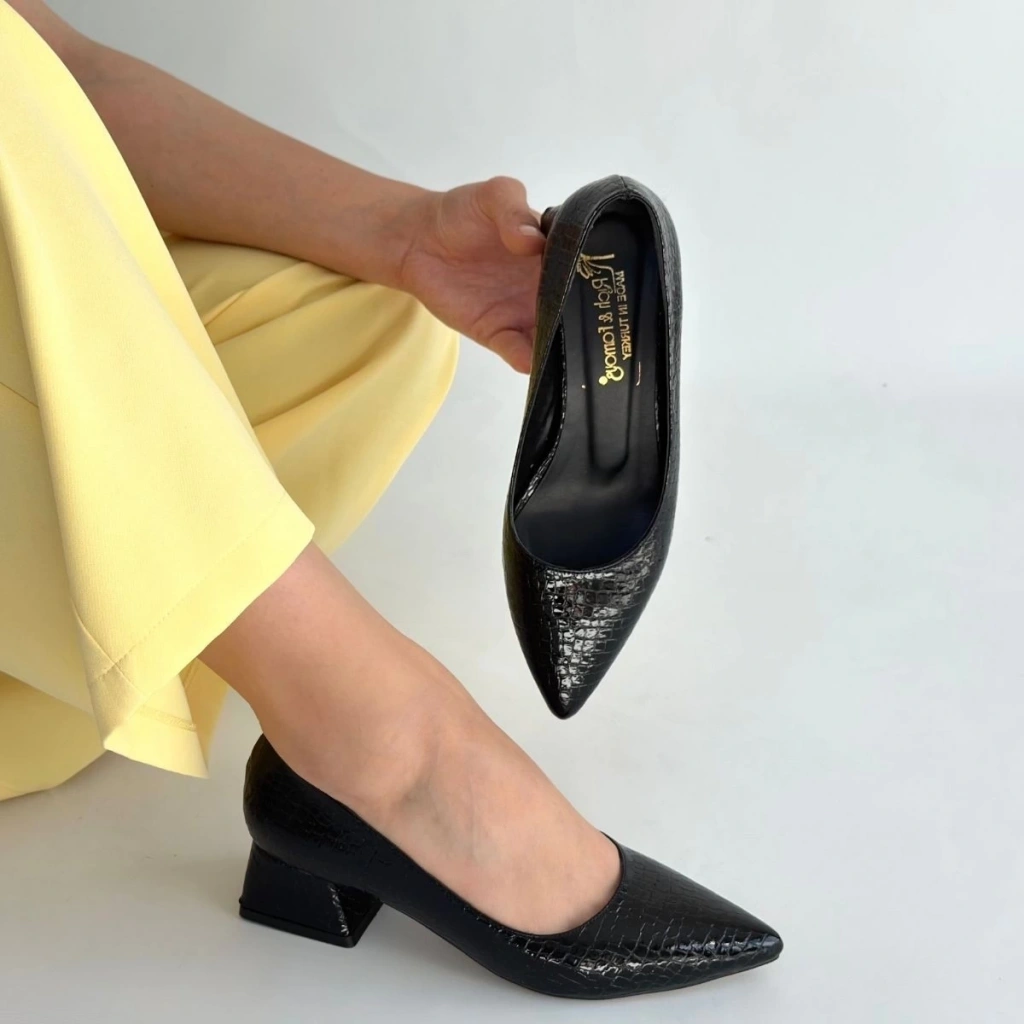 Meort Siyah Rugan Topuklu Ayakkabı