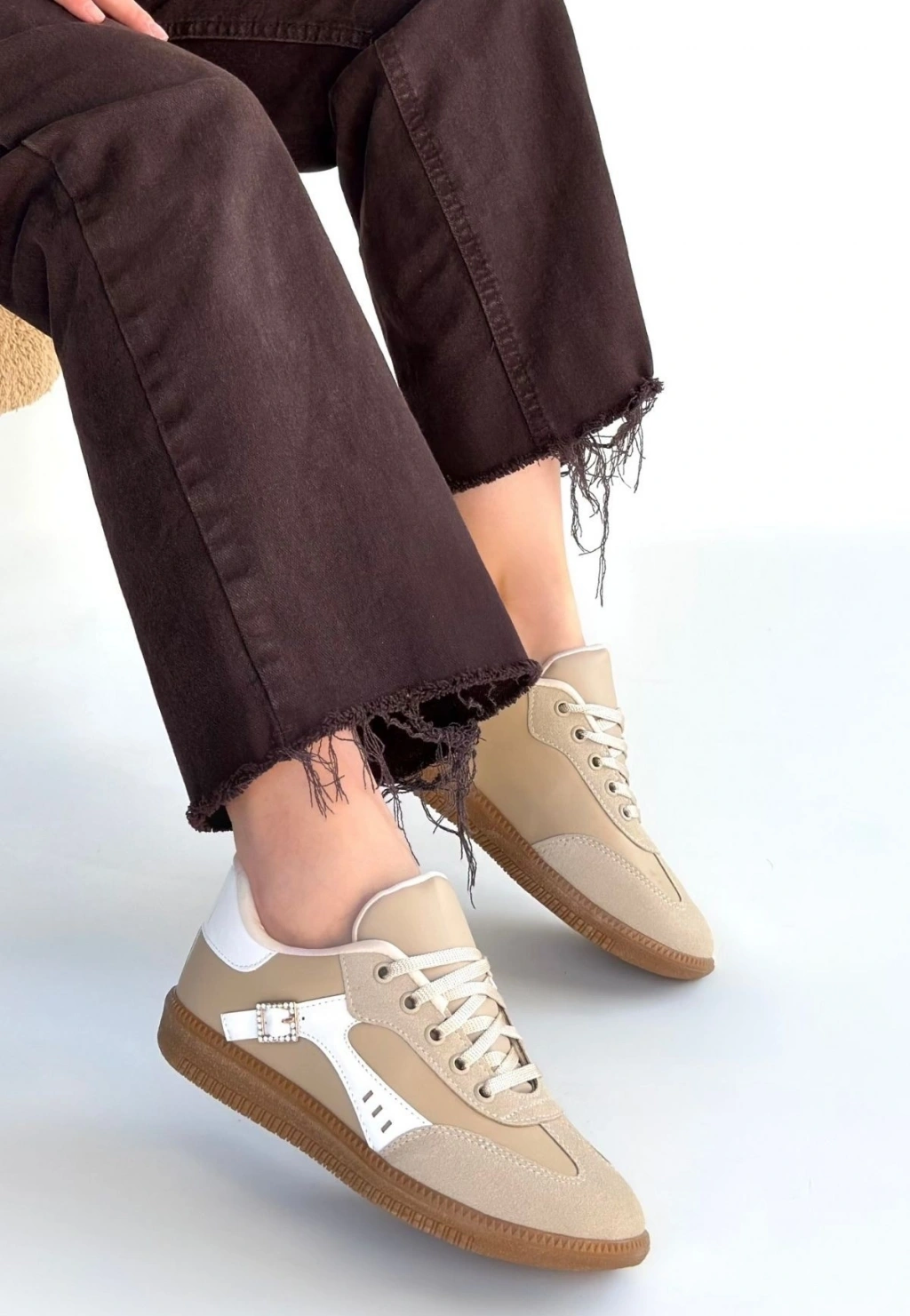 Mier Bej Cilt Bağcıklı Spor Ayakkabı