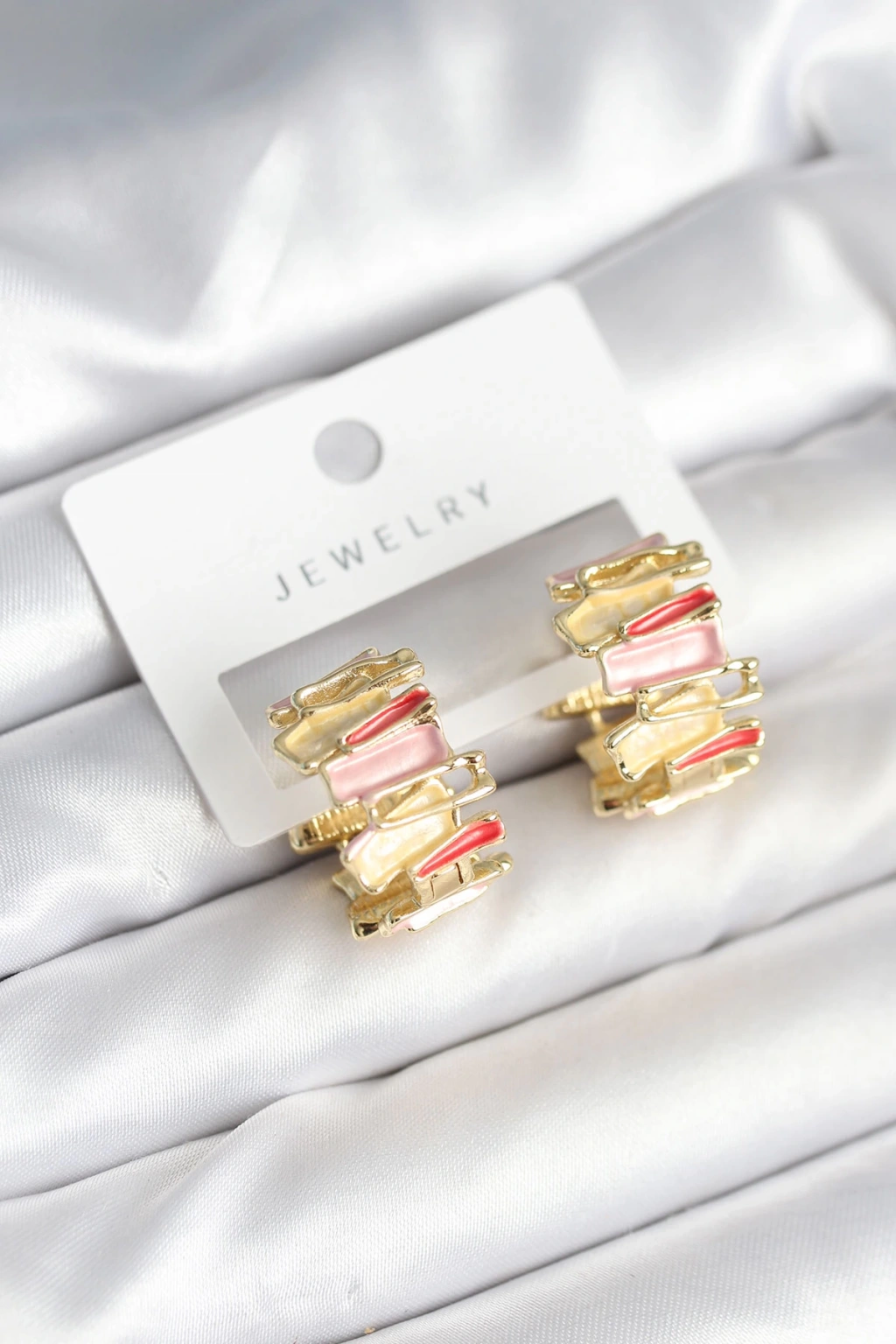 Mineli Karışık Renkli Gold Pirinç Kadın Küpe