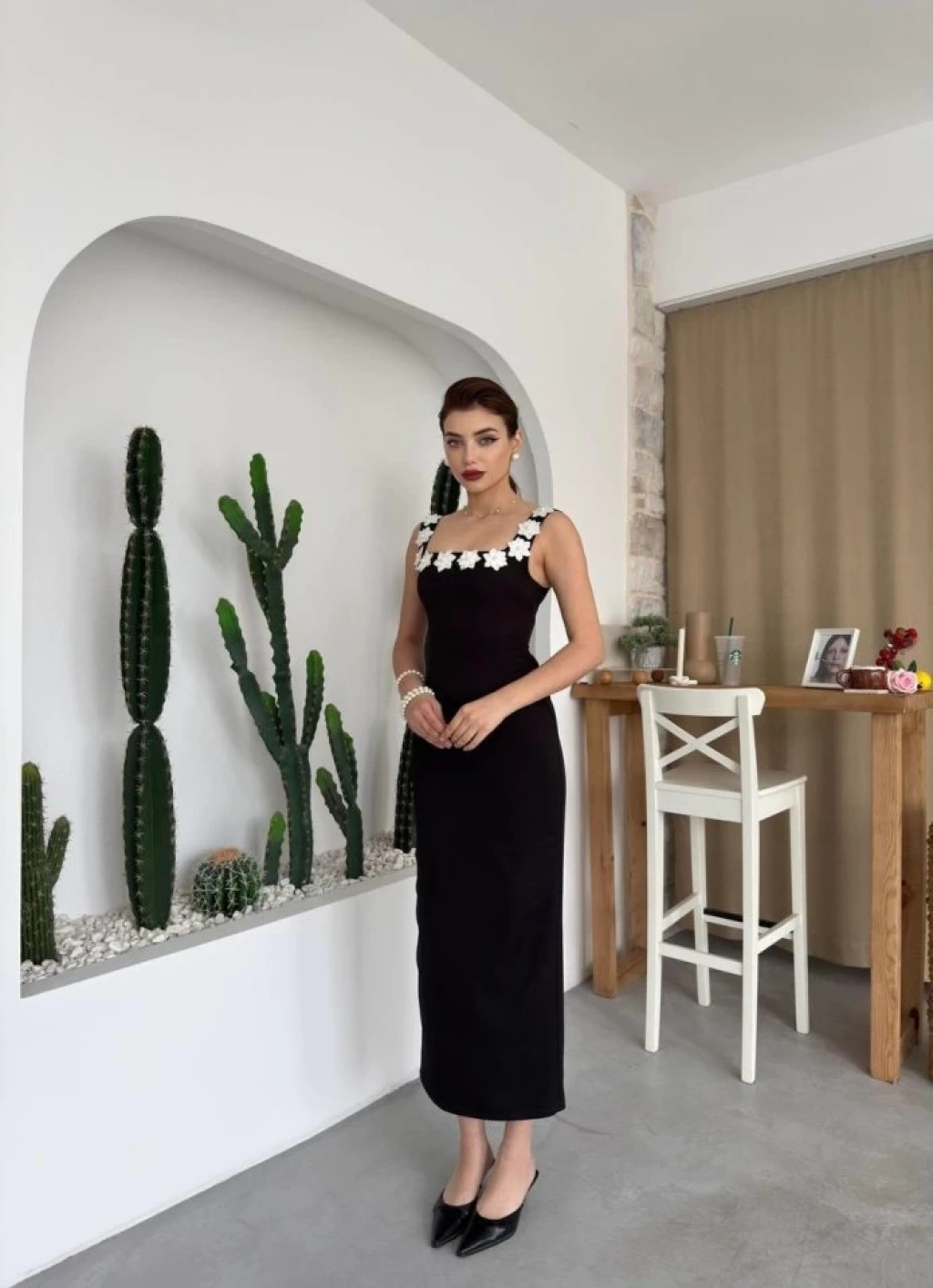Modelin Ölçüleri: Boy:165, Kg:55, Göğüs:90, Bel:72, Kalça: 100