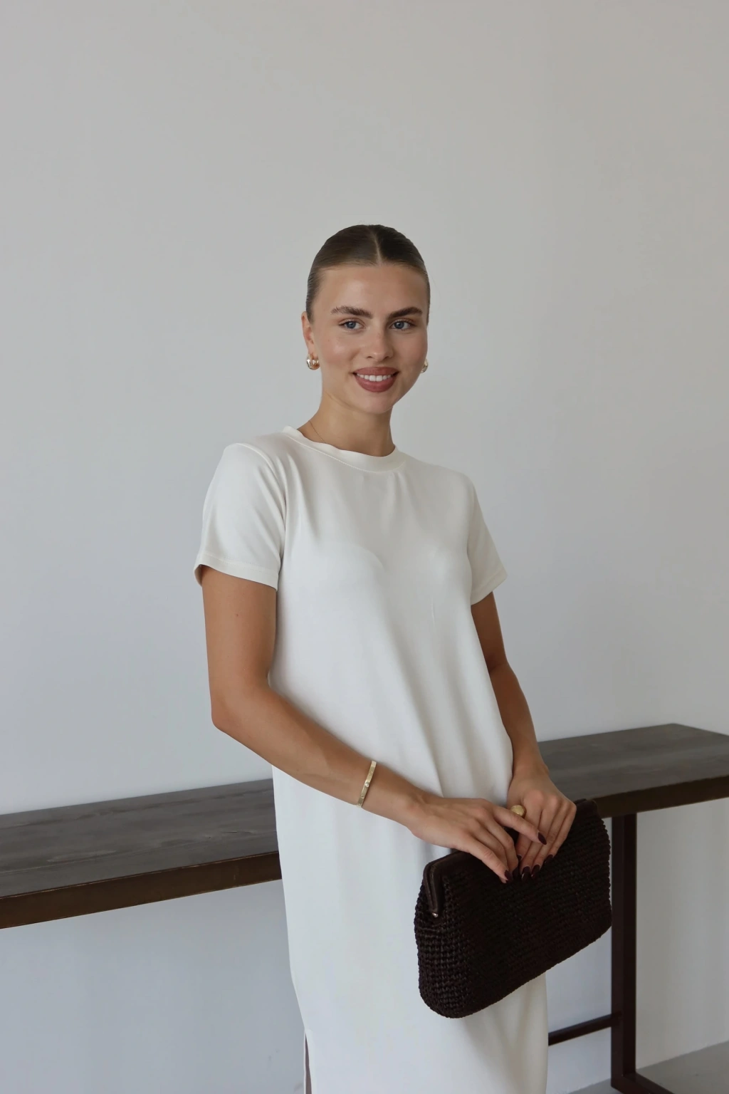 Modal yırtmaçlı elbise beyaz pt